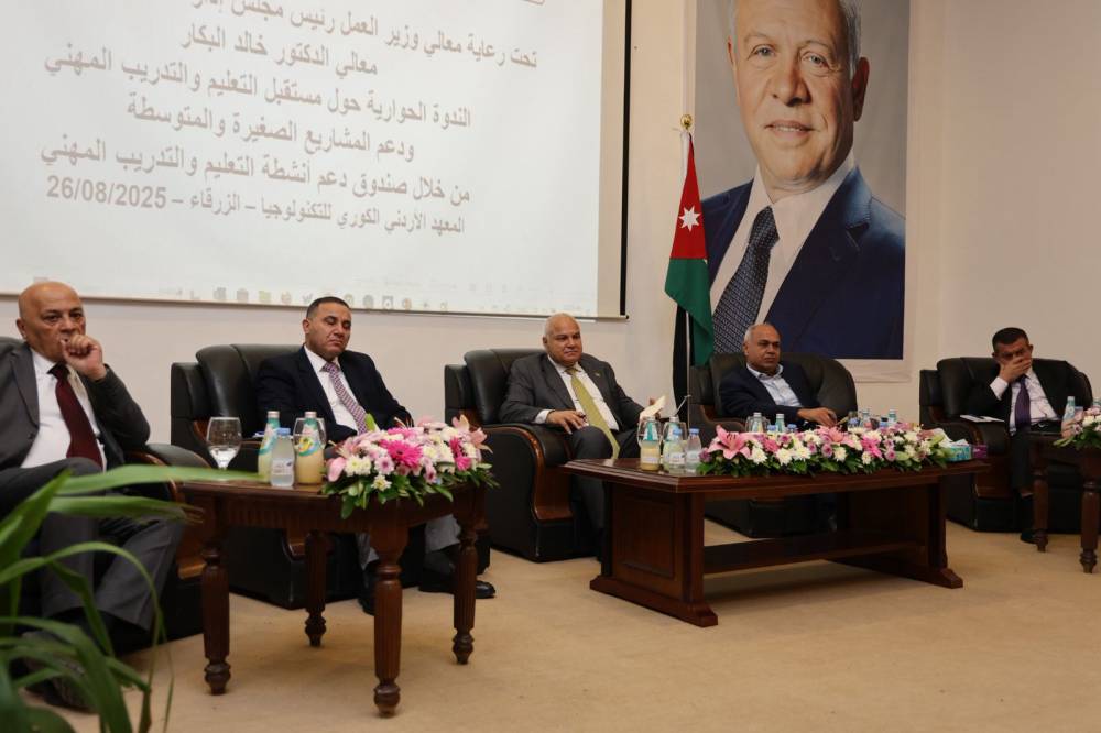برعاية رئيس مجلس إدارة مؤسسة التدريب المهني/وزير العمل الدكتور خالد البكار، نظمت مؤسسة التدريب المهني اليوم الثلاثاء في المعهد الأردني الكوري للتكنولوجيا ندوة حوارية بعنوان "مستقبل التعليم والتدريب المهني ودعم المشاريع الصغيرة والمتوسطة من خلال صندوق دعم أنشطة التعليم والتدريب المهني".