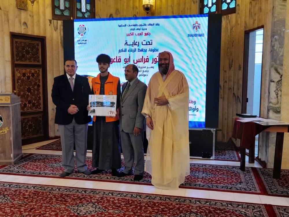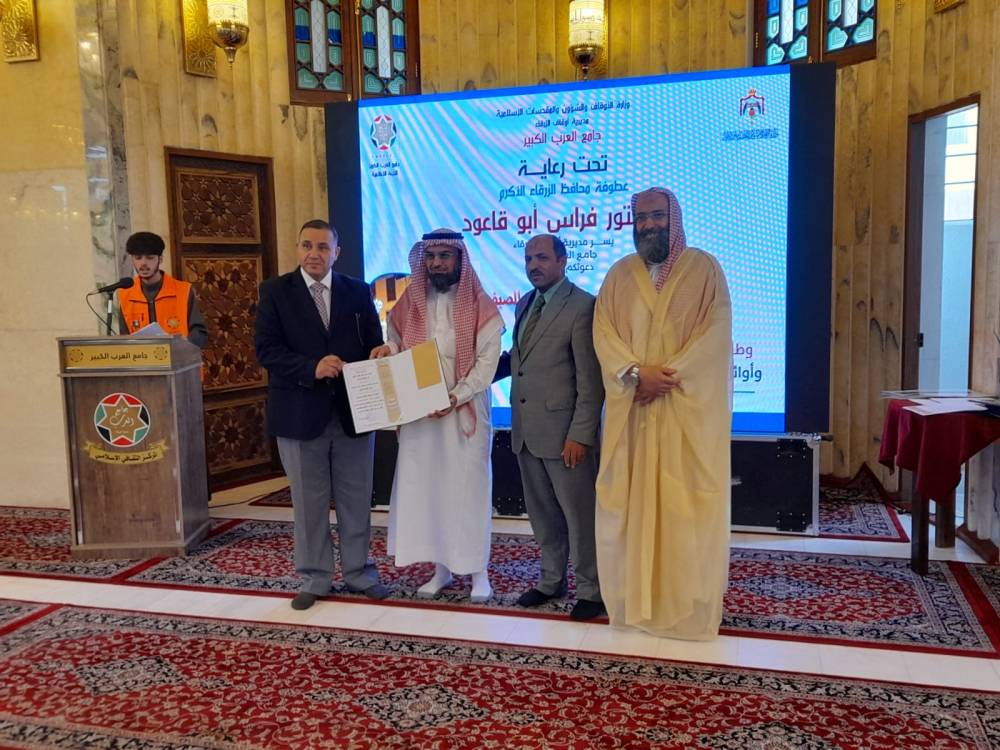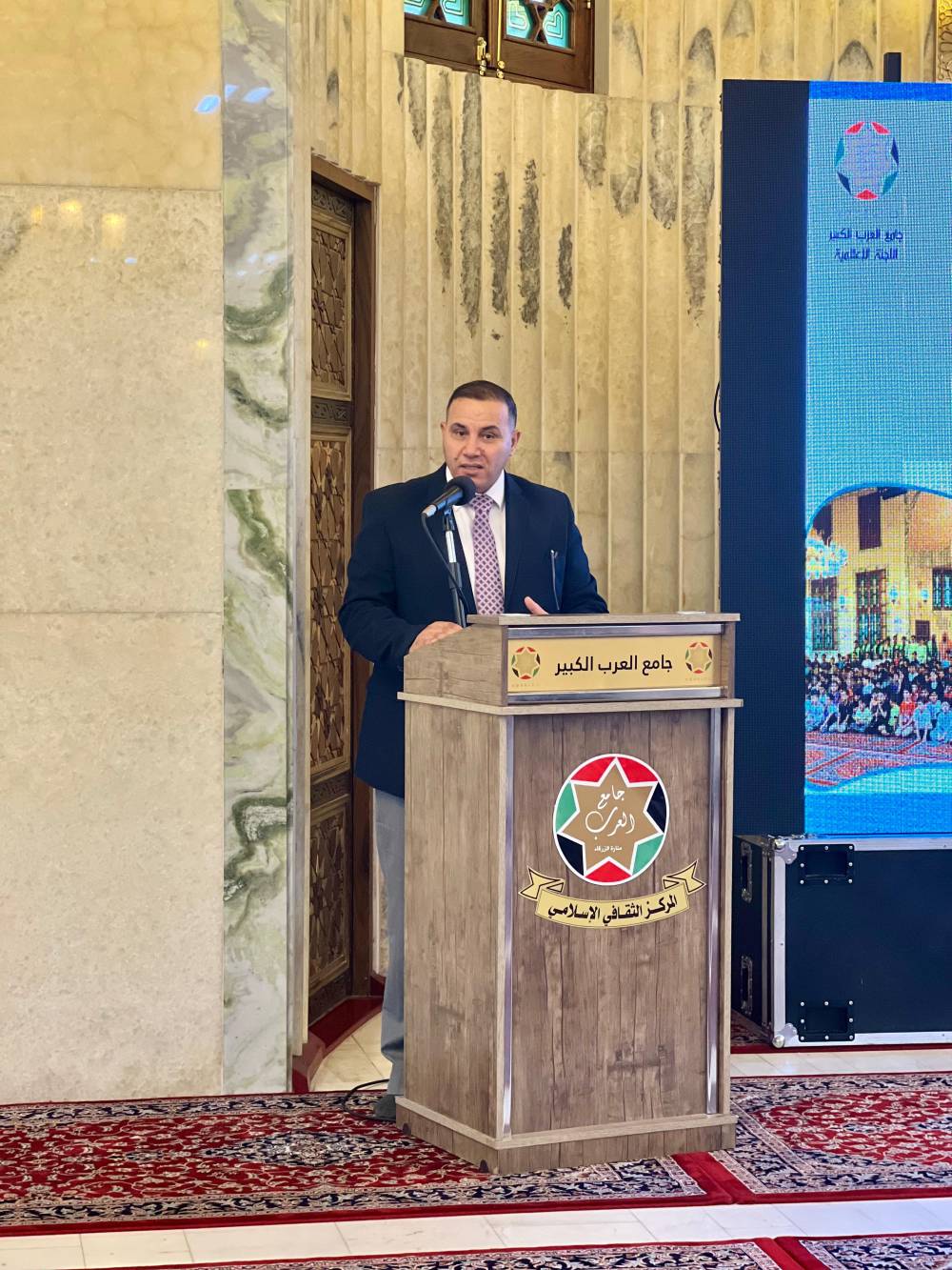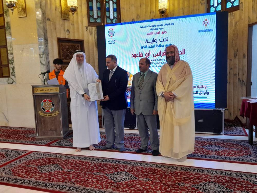 وأكد الشيخ أحمد الزعبي، إمام جامع العرب، خلال كلمته في الحفل، ترحيبه بمحافظ الزرقاء الدكتور فراس أبو قاعود، راعي الحفل، وبمدير أوقاف الزرقاء الدكتور أحمد الحراحشة، مثمناً دعمه المتواصل للمركز الثقافي ولجميع العاملين فيه.
