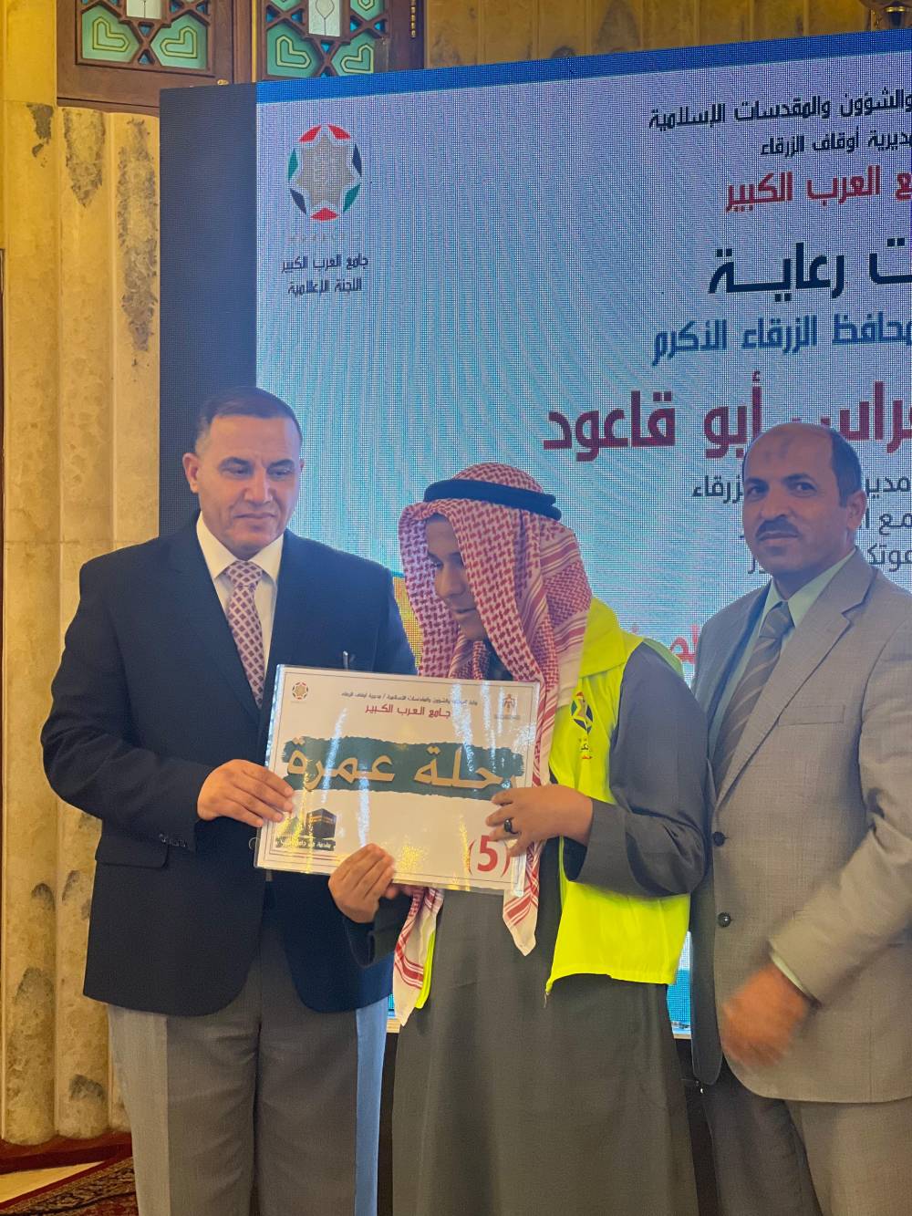 وأكد الدكتور فراس أبو قاعود محافظ الزرقاء خلال كلمته في الحفل اعتزازه بجهود وزارة الأوقاف والشؤون والمقدسات الإسلامية ومديرية أوقاف الزرقاء في ترسيخ القيم الإسلامية الأصيلة، ودعمها للمسيرة التعليمية والتربوية .
