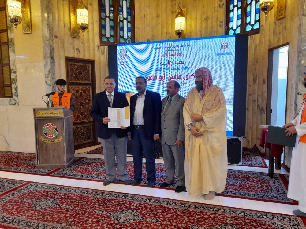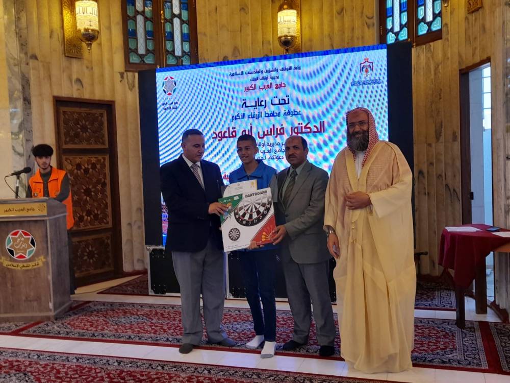 وأضاف أبو قاعود أن من يحفظ القرآن الكريم يحظى بمكانة رفيعة لا يسبقه إليها أحد، مشيراً إلى أن جامع العرب يتميز بدوره الريادي في احتضان هذه الفئة المباركة من الطلبة. ووجه التهنئة لحفظة كتاب الله الكريم، سائلاً الله أن يحفظ الوطن وقائده .