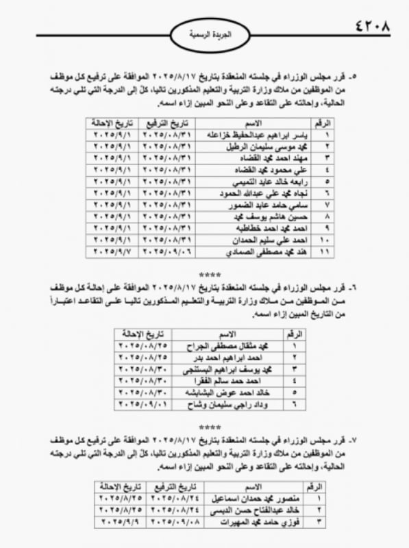 صدرت في عدد الجريدة الرسمية اليوم السبت، قرارات مجلس الوزراء بإحالات موظفين إلى التقاعد وإنهاء خدمات آخرين.