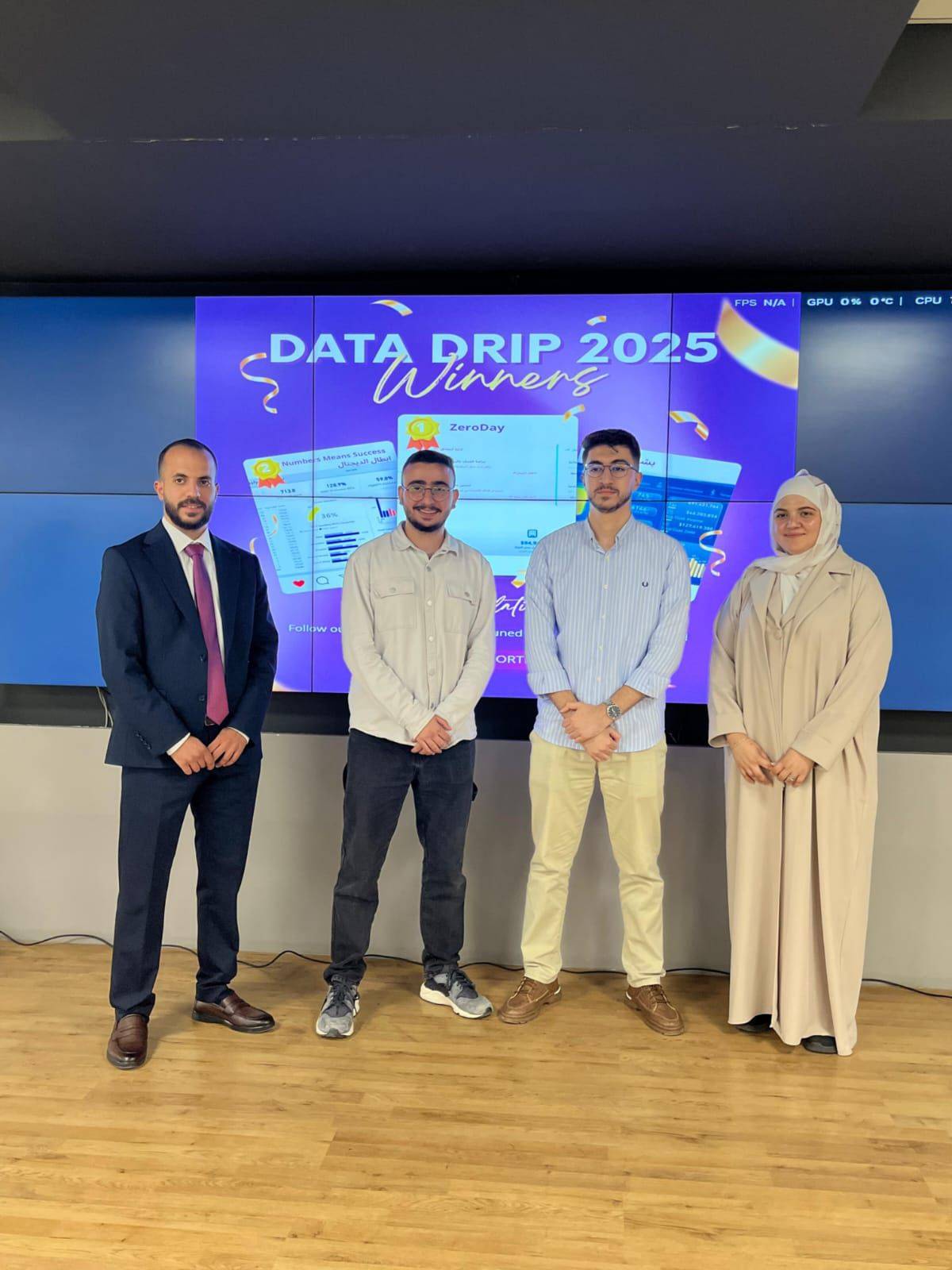 وضم الفريق الفائز، كل من الطلبة محمد رشدان، زيد ابو رمان، وسعد التعمري، الذين أبدعوا في تقديم حلول مبتكرة لتحليل البيانات البنكية وإظهار قدرتهم على التعامل مع البيانات الضخمة واتخاذ قرارات قائمة على التحليل الدقيق.