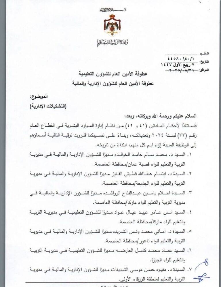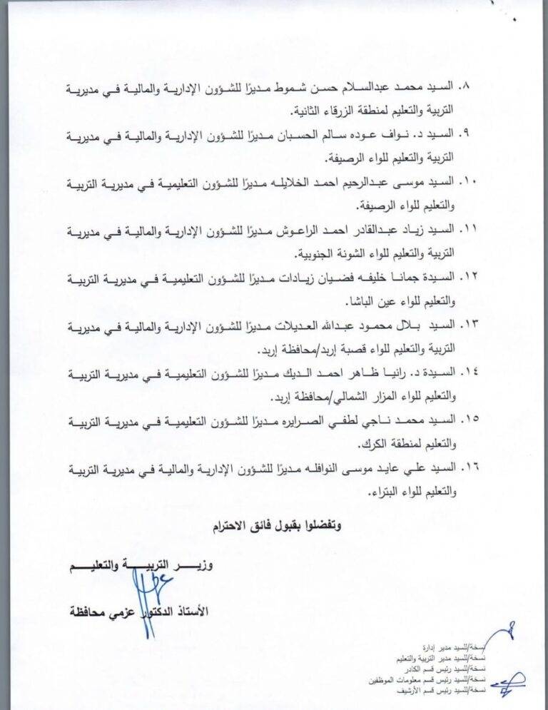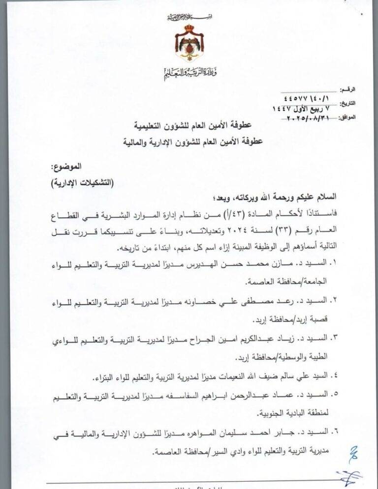 عاجل - تشكيلات ادارية في وزارة التربية والتعليم (اسماء)