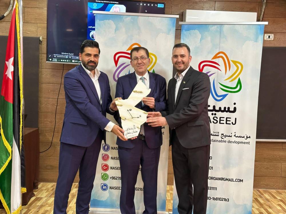 أسامة القضاة- رعى مساعد الأمين العام لشؤون التربية والتعليم في حزب الميثاق الوطني الأردني وعضو مجلس امناء الجامعة الاردنية الدكتور عدنان مقطش الأمسية التي نظمتها مؤسسة نسيج للتنمية المستدامة في محافظة عجلون اليوم الأحد بعنوان "خدمة العلم.. رؤية ملكية.