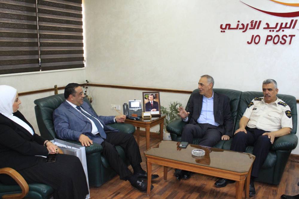 والتقى العدوان رئيس مجلس إدارة البريد الأردني سامي كامل الداوود بحضور مدير عام البريد الأردني هنادي الطيب ومدير جمرك مركز التجارة الإلكترونية والنقل السريع عقيد جمارك يحيى الفراهيد.