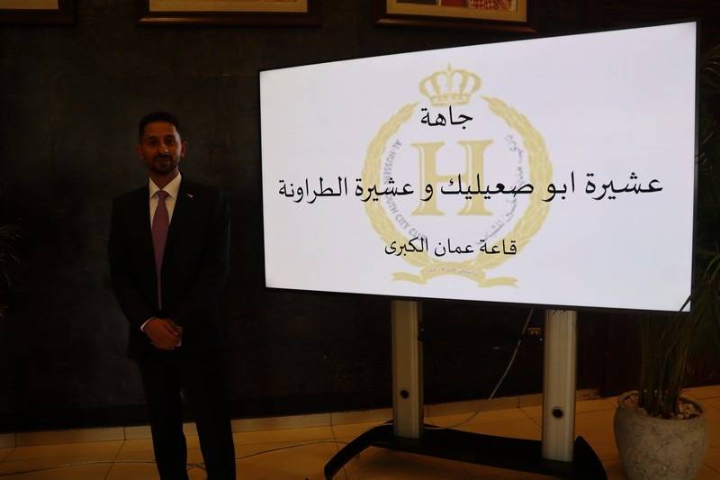 وطلب باسم الجاهة معالي يوسف العيسوي "رئيس الديوان الملكي الهاشمي"، ورد عليه بالإيجاب والقبول دولة رئيس الوزراء الأسبق الدكتور عبدالرؤوف الروابدة.