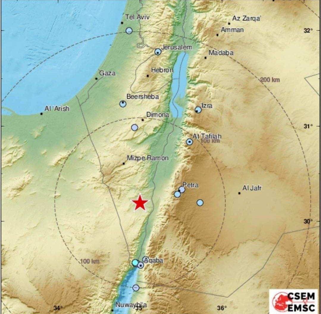 نبأ الأردن -شعر الأردنيون في المناطق الجنوبية بهزة ارضية بقوة 4.1 ضربت فلسطين والاردن ومركزها جنوب النقب.