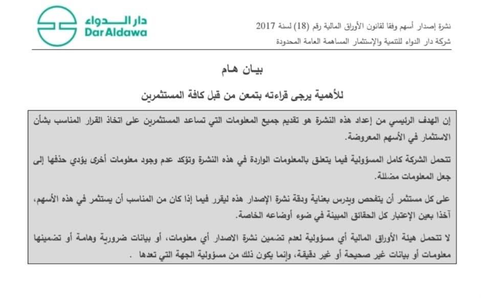 إدراج الإصدار الثاني لحقوق اكتتاب أسهم شركة دار الدواء للتنمية والاستثمار (DADI- R0103)