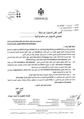 ووفقًا للتعميم الصادر، يتوجب على الأدوية المصنعة محليًا أن تحمل أرقام GTIN صادرة عن هيئة الترقيم الأردنية GS1 Jordan مع الحصول على شهادة عضوية بذلك، فيما يجب أن تكون أرقام GTIN للأدوية المستوردة متوافقة مع نظام معايير GS1 العالمية (GS1 System of Standards).