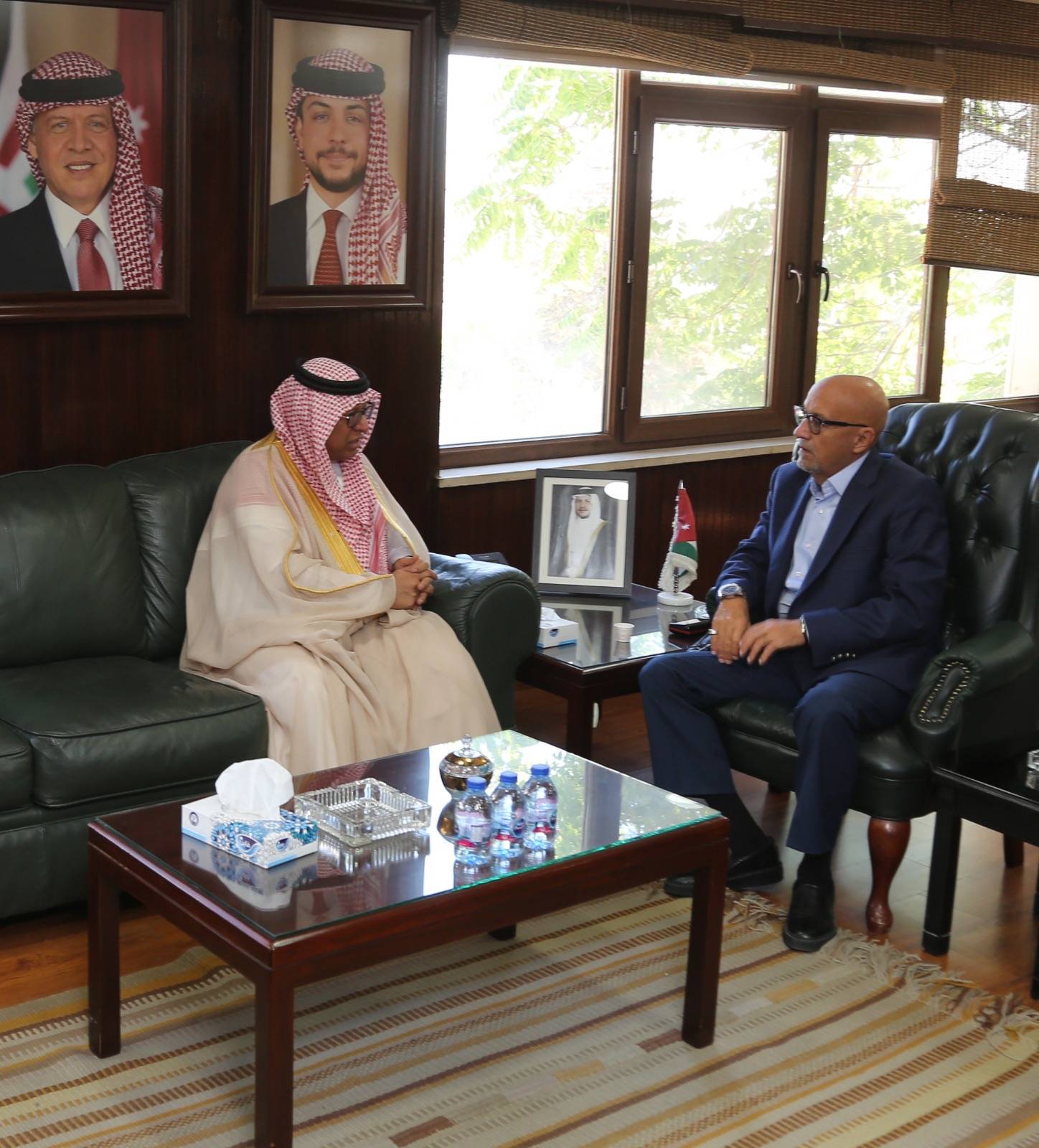 إستقبل وزير المياه والري المهندس رائد أبو السعود اليوم الخميس 11 أيلول 2025 في مكتبه بوزارة المياه والري القائم بالأعمال في سفارة المملكة العربية السعودية لدى الأردن السيد محمد بن حسن مونس، حيث جرى بحث أوجه التعاون المشترك وتعزيزها في مواجهة التحديات المائبة وسبل تطويرها.