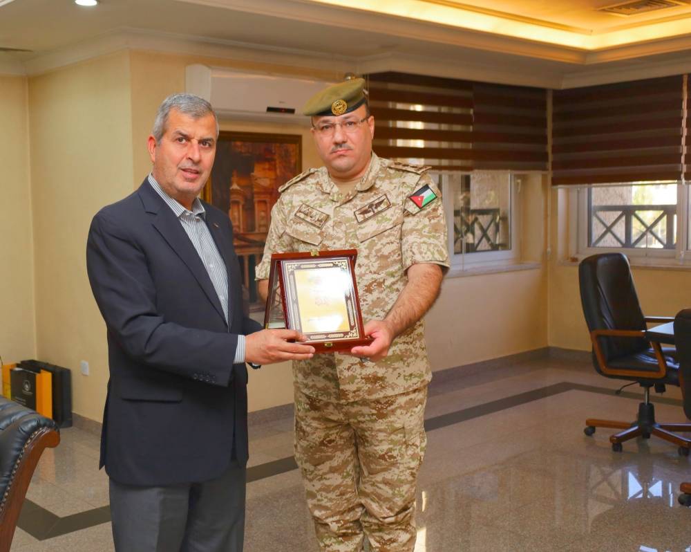 كما قدّم العوايدة درعاً تكريمياً للقوات المسلحة، تقديراً لدورها في دعم المؤسسات الحكومية وترسيخ الشراكات الوطنية.