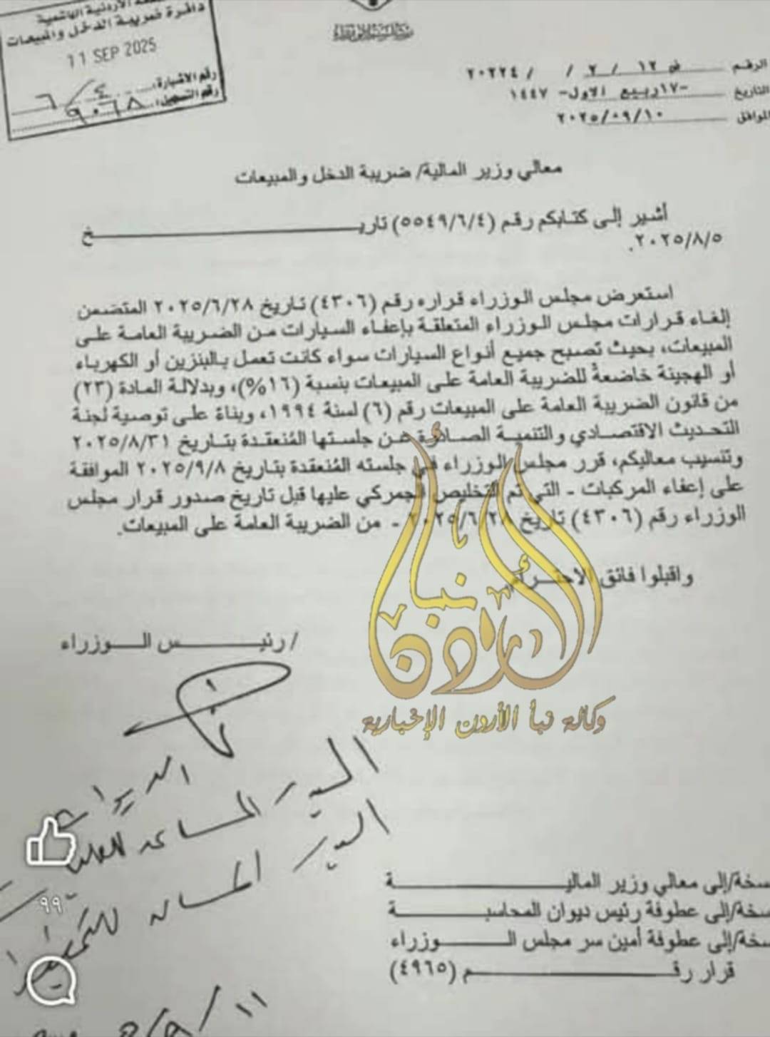 الذي خفض الضرائب والرسوم على كل انواع السيارات.