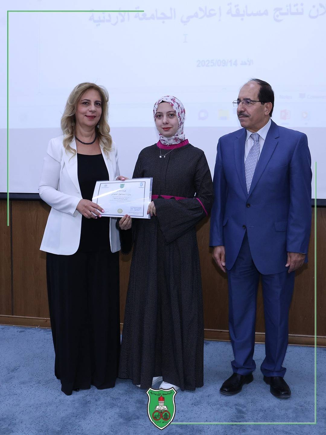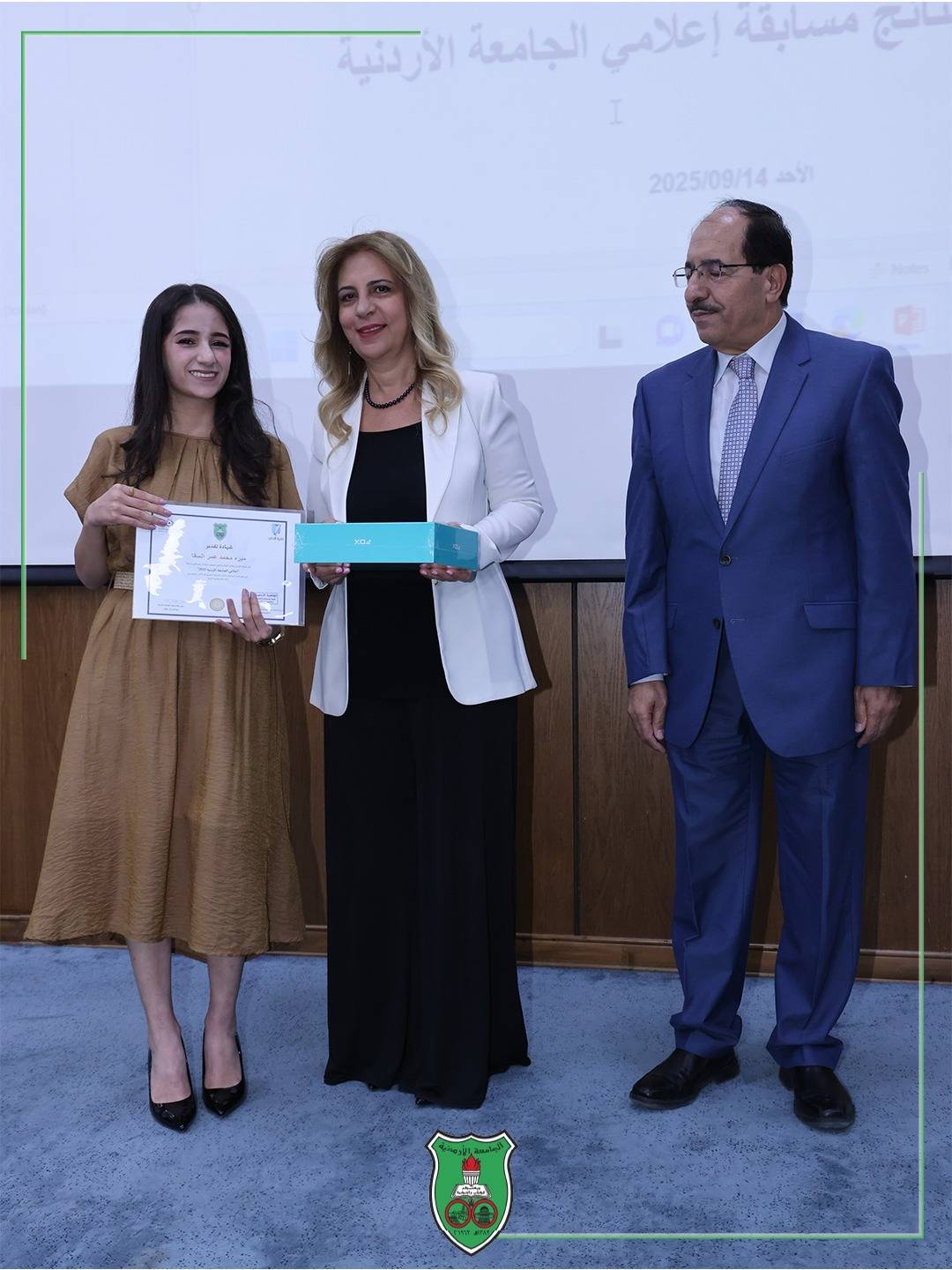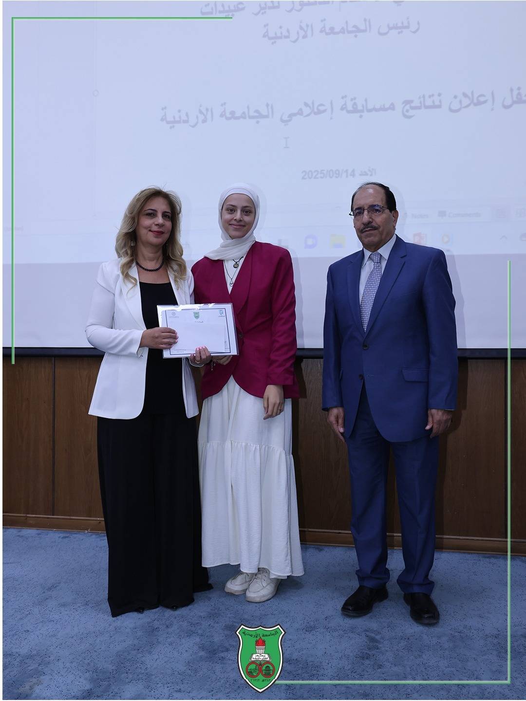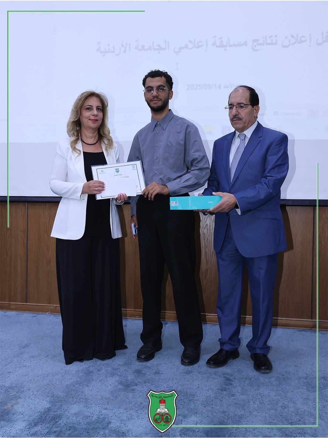 أعلنتِ الجامعة الأردنيّة نتائج مسابقة "إعلامي الأردنيّة" التي نظّمها قسم الصحافة والإعلام والاتصال الرقمي في كلّيّة الآداب بالتعاون مع اتحاد الطلبة، بهدف إبراز مواهب الطلبة وتشجيعهم على توظيف معارفهم النظريّة في إنتاجات إعلامية تواكب تطوّرات الصحافة والإعلام الرقميّ.