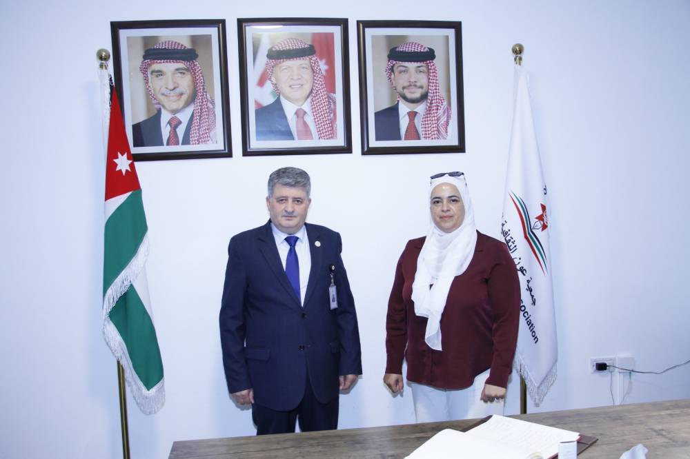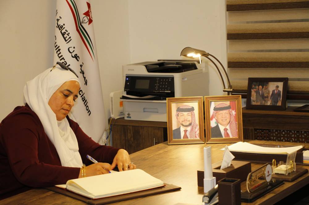 وكانت الدكتورة آلاء العزام قد دونت كلمة في سجل زوار الجمعية خلال إستبقبال اسعد العزام رئيس الهيئة الإدارية لها بمكتبه في مقر الجمعية.