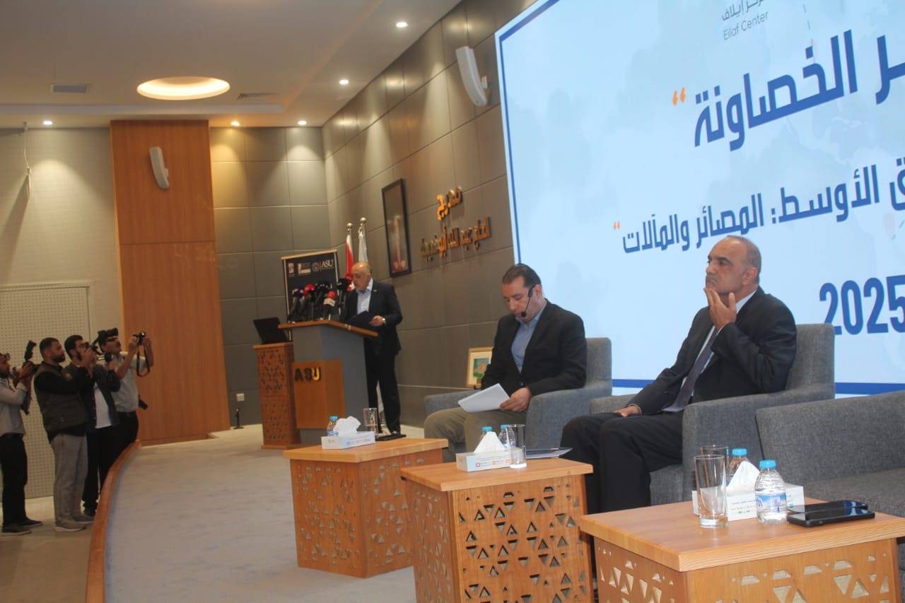 وأضاف خلال كلمته في مؤتمر عوالم الصراع في الشرق الأوسط: المصائر والمآلات الذي تنظمه جامعة العلوم التطبيقية ومركز إيلاف للدراسات، أن الأردن والعرب والعالم يتمسكون بحل الدولتين كسبيل وحيد لإنهاء التوتر وتحقيق السلام، مؤكدًا أننا نعيش لحظة تاريخية غير معتادة في ظل التمرد الإسرائيلي على الشرعية الدولية وصمت العالم على انتهاكاته