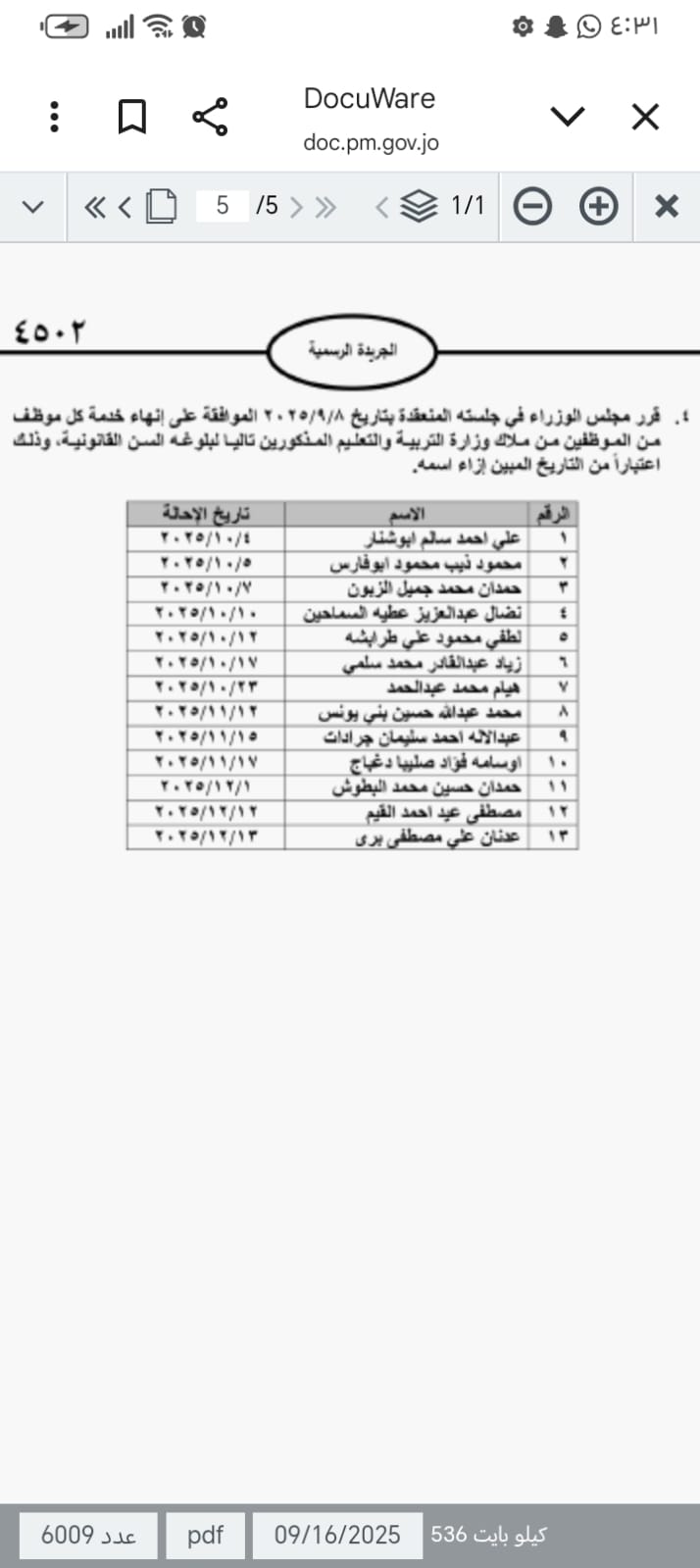 عاجل-موظفون حكوميون إلى التقاعد (أسماء)