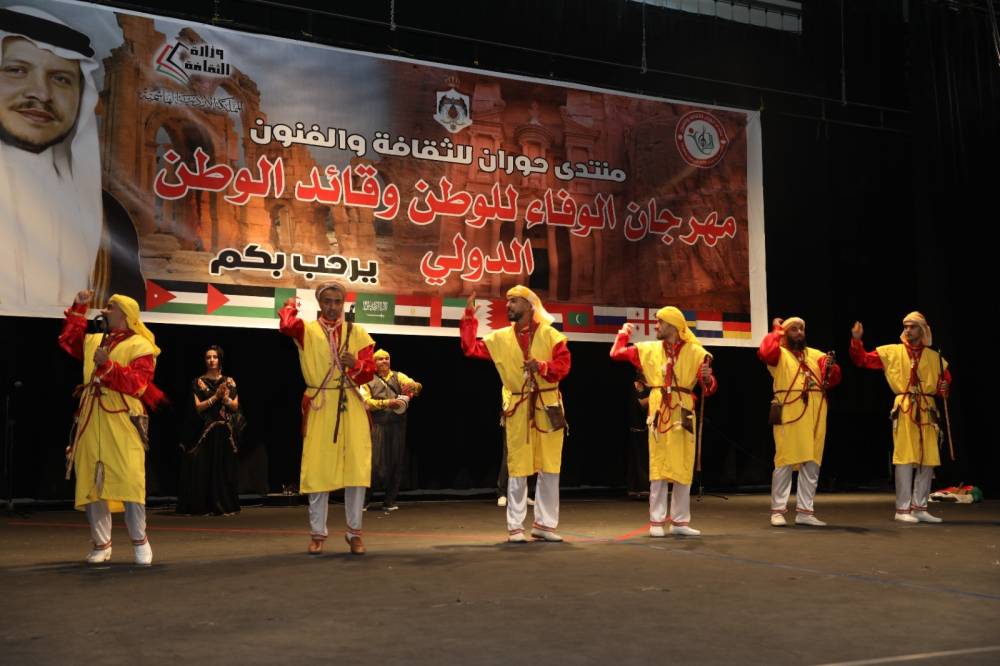 رعى رئيس الديوان الملكي الهاشمي يوسف حسن العيسوي في محافظة إربد اليوم، انطلاق فعاليات مهرجان الوفاء للوطن وقائد الوطن الدولي العاشر، والذي ينظمه منتدى حوران للثقافة والفنون بمشاركة عدد من الفرق العربية والأجنبية.