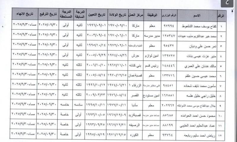 ترفيعات وانهاء خدمات في وزارة التربية - اسماء
