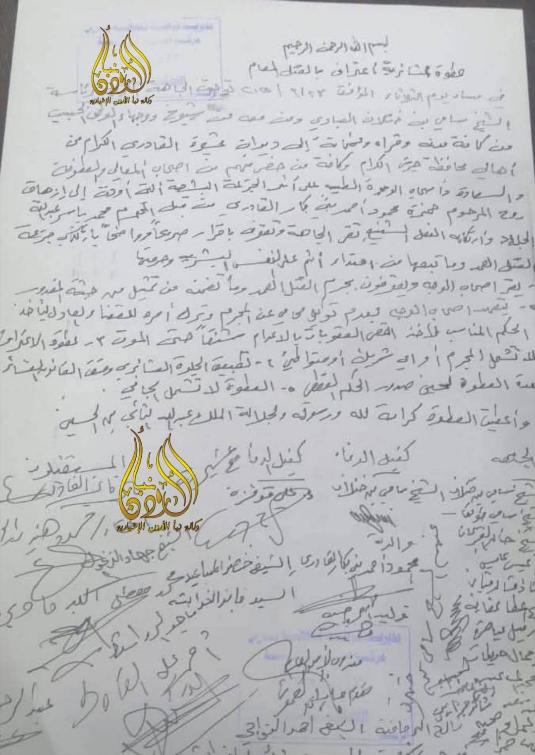 وأصدرت عشيرة القادري، بعد أخذ العطوة، البيان التالي :