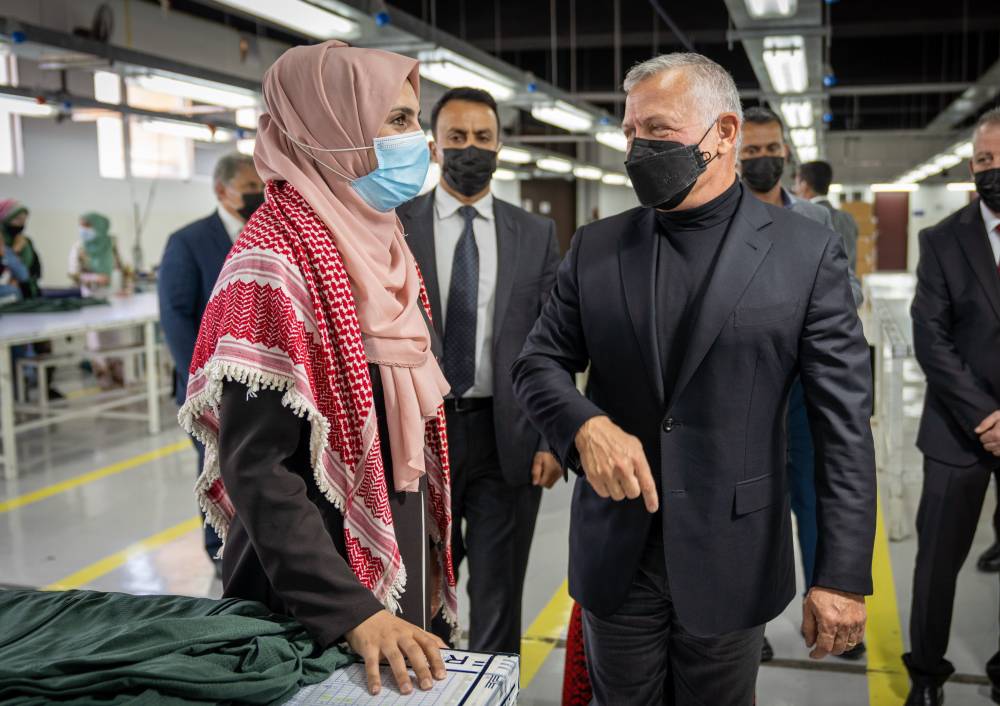 الملك يزور مصنعاً للألبسة في لواء المزار الشمالي