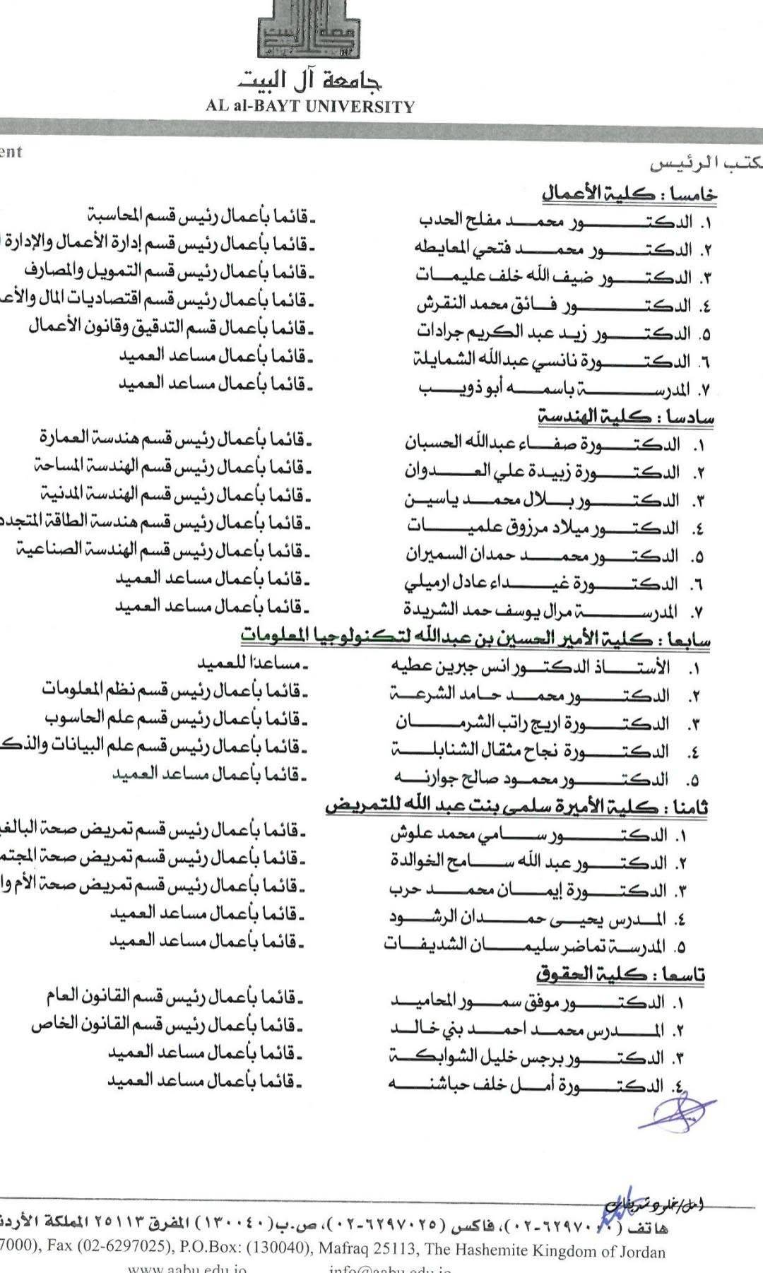 تشكيلات أكاديمية لنواب العمداء في آل البيت (وثائق)