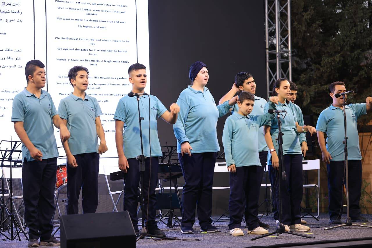 في بادرة إنسانية لاقت تفاعلًا كبيرًا، دعا المنظمون طلابًا أردنيين من ذوي متلازمة داون والتوحّد من مركز البنيات للتربية الخاصة للمشاركة في الغناء الجماعي. وقد أثرت أصواتهم الصافية في الحاضرين، مجسّدة روح "الوئام ووحدة البشرية".