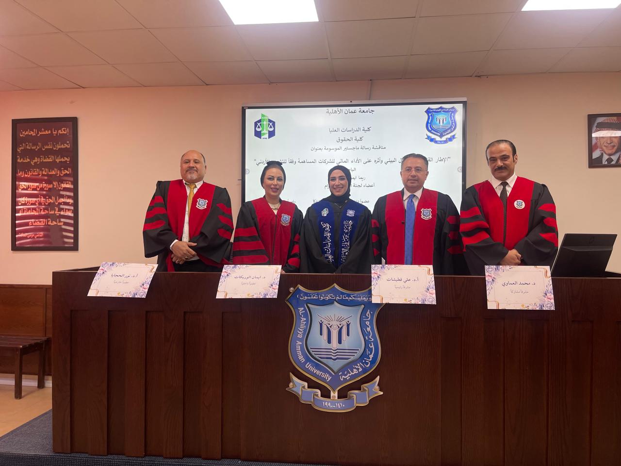 ريما الشويات تحصد درجة الماجستير في الحقوق بامتياز من جامعة عمان الأهلية