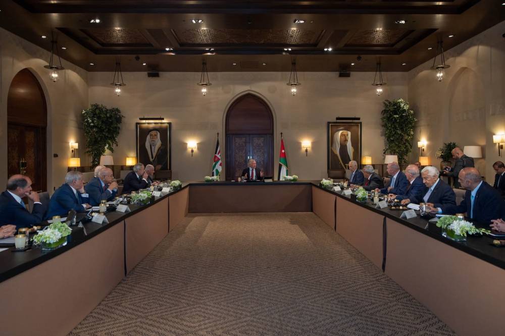 جاء ذلك خلال لقاء جلالة الملك رؤساء وزراء سابقين في قصر الحسينية، إذ تحدث جلالته عن التطورات بالمنطقة ونتائج زيارته إلى نيويورك الأسبوع الماضي للمشاركة في اجتماعات الجمعية العامة للأمم المتحدة، واصفا إياها بالناجحة.
