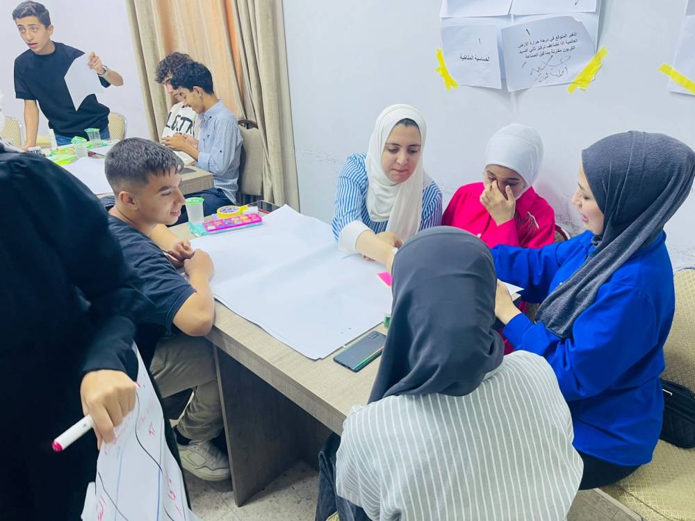 والفئات الاكثر تضرراً في التغير المناخي، والحلول المقترحة، ومبادرات مقترحة للعمل على مساعدة الفئات المهمشة، وتم تنفيذ معرض لوحات تحت عنوان (رسمة وفكرة) .