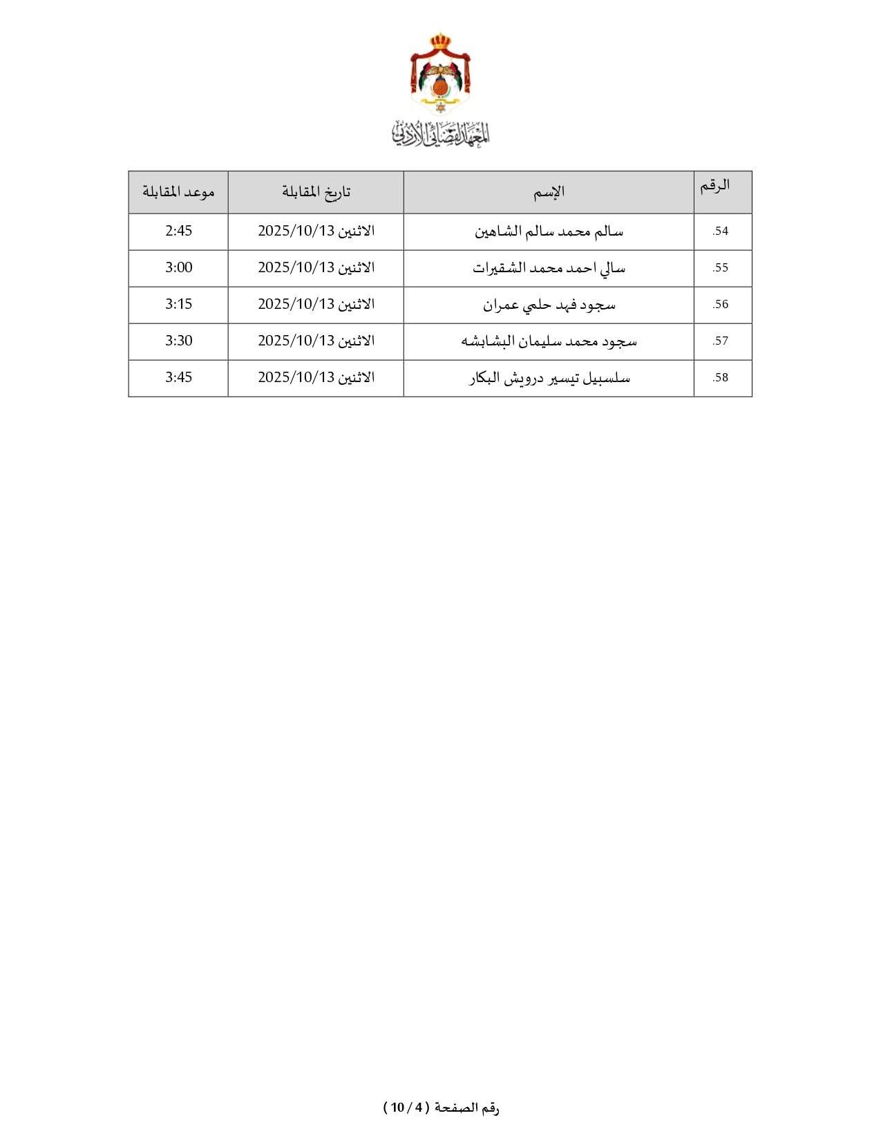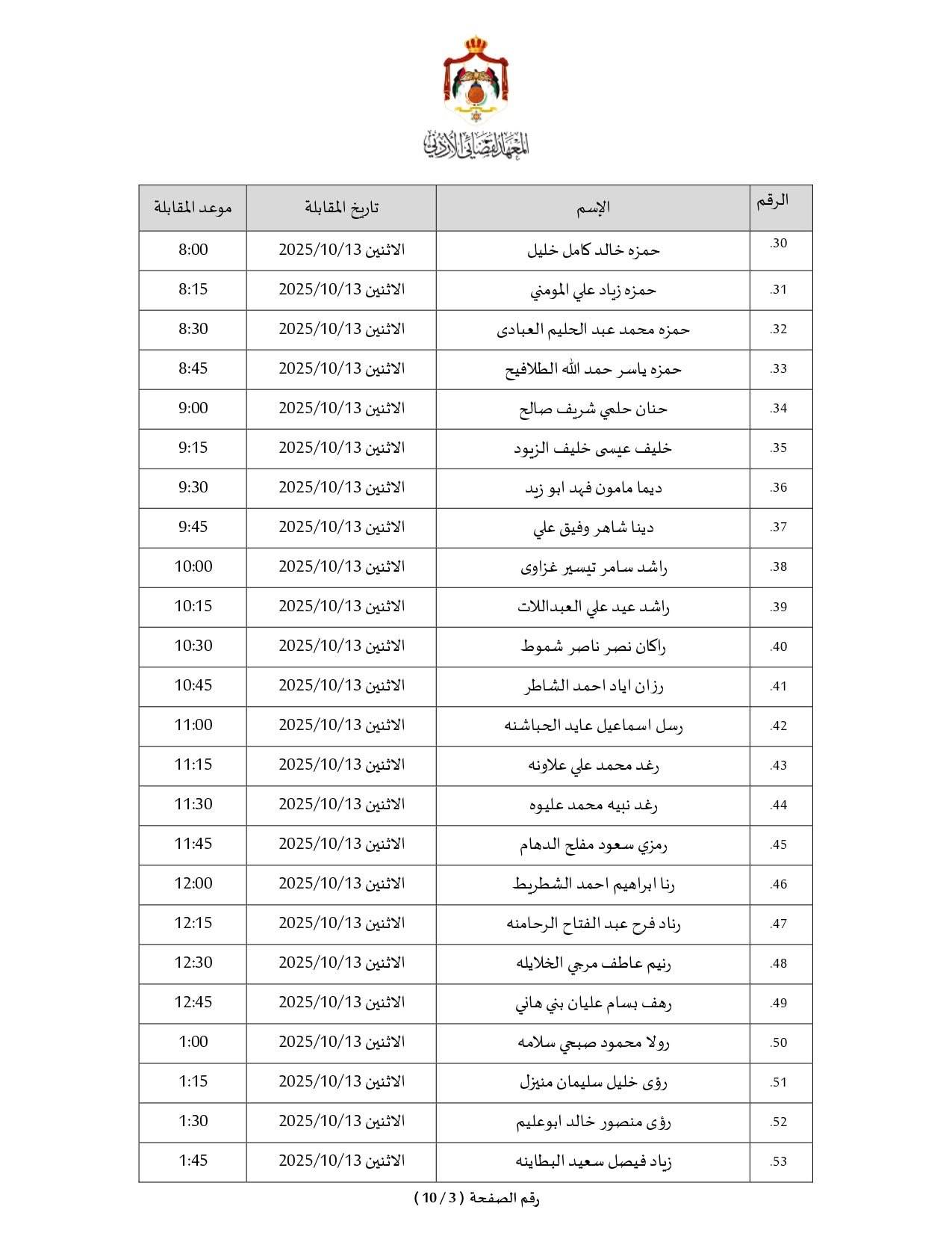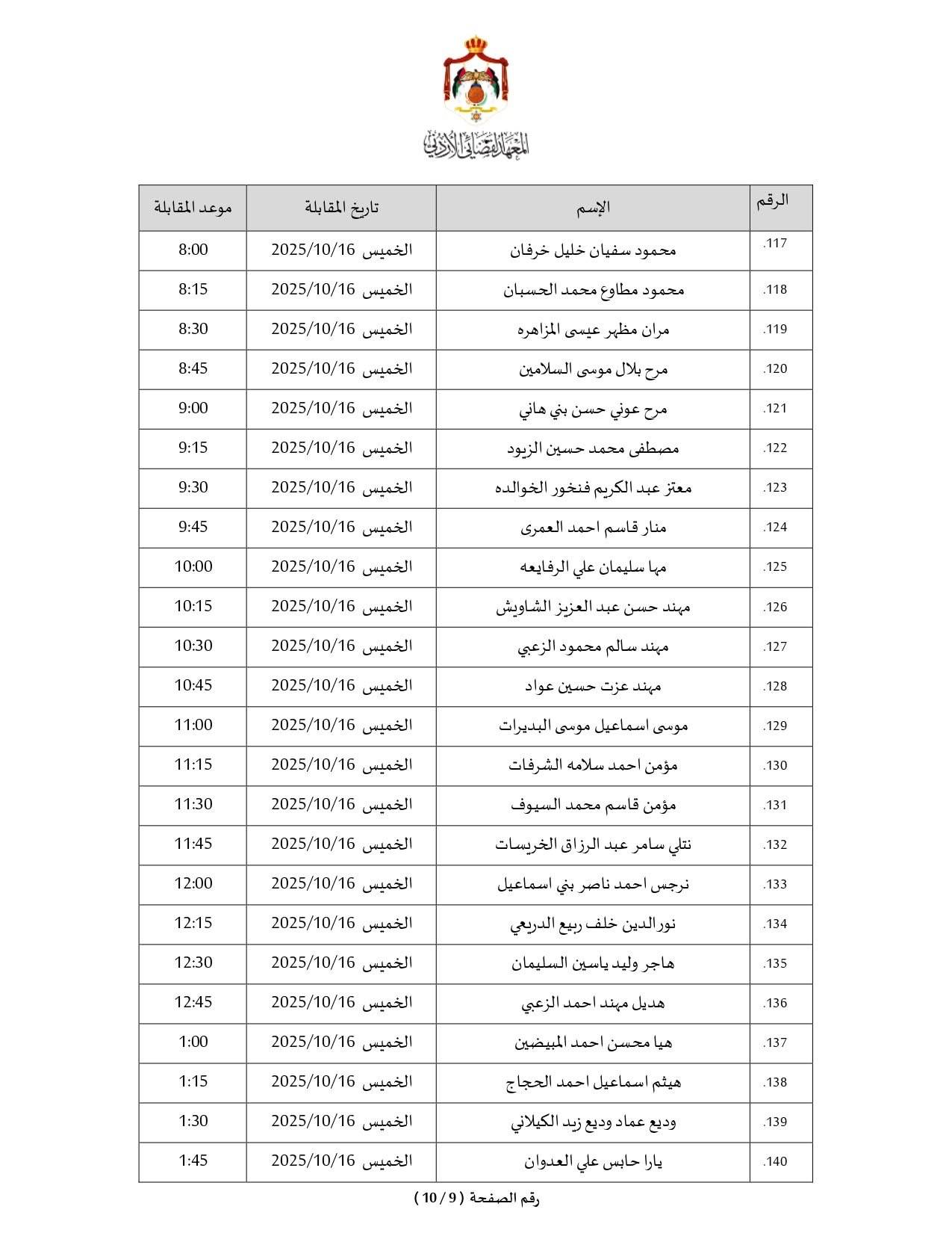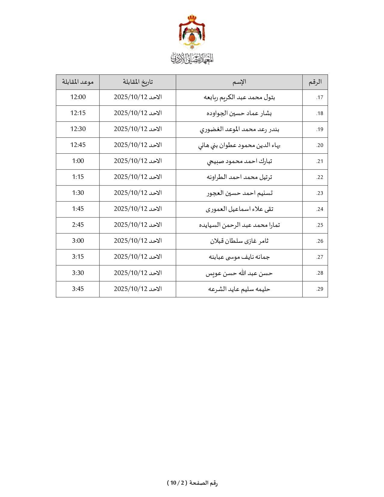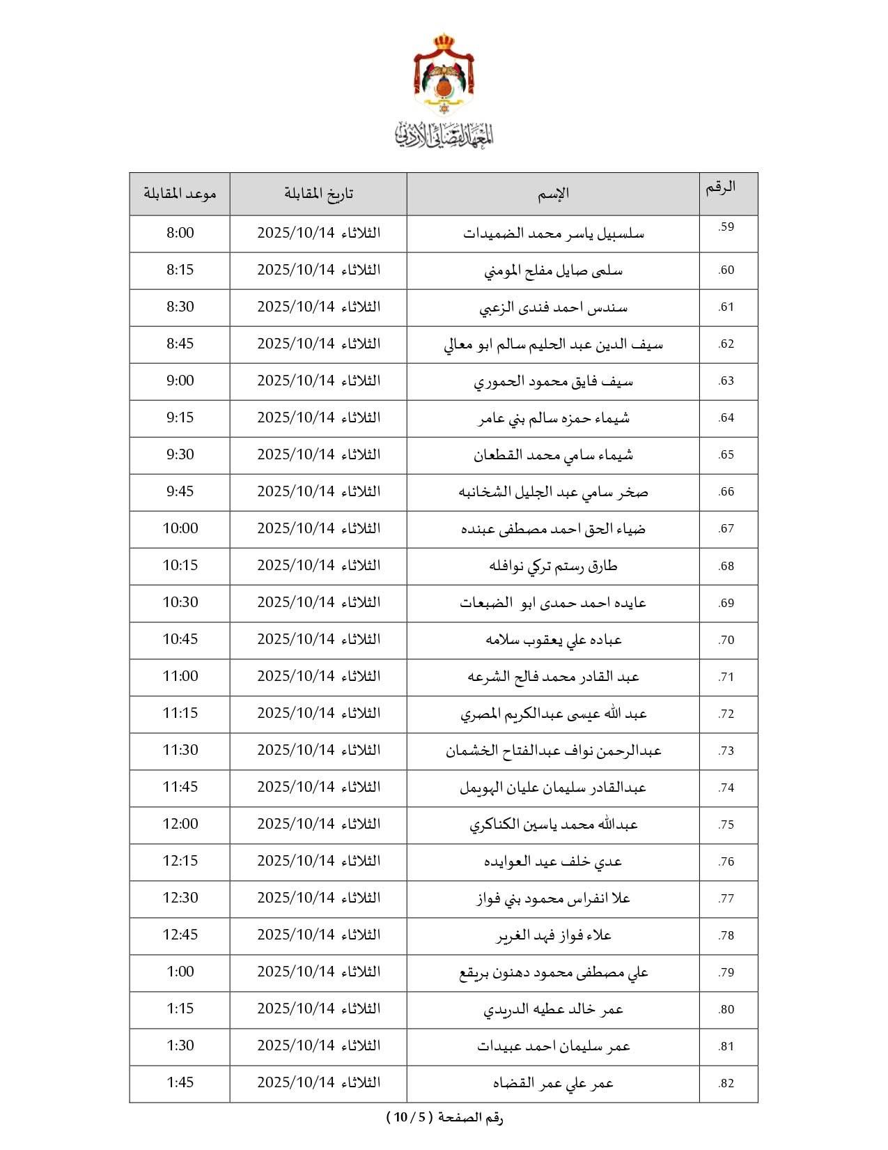 والمدعوين للإمتحان الشفهي والمقابلة الشخصية للمسابقة والتي ستعقد خلال الفترة (12/10/2025 – 16/10/2025) .