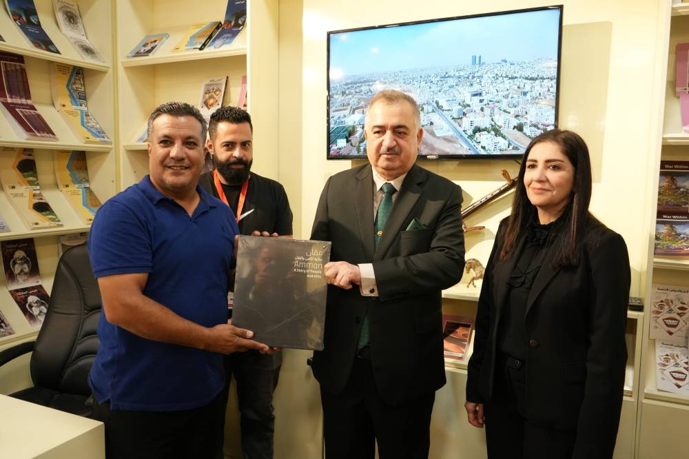 وجال السفير البرزنجي يرافقه رئيس اتحاد الناشرين الأردنيين ومدير معرض عمان الدولي للكتاب، جبر أبوفارس على اجنحة المؤسسات الرسمية، وجناح سلطنة عُمان ضيف الشرف للدورة (24)، وبعض دور النشر المشاركة في المعرض.
