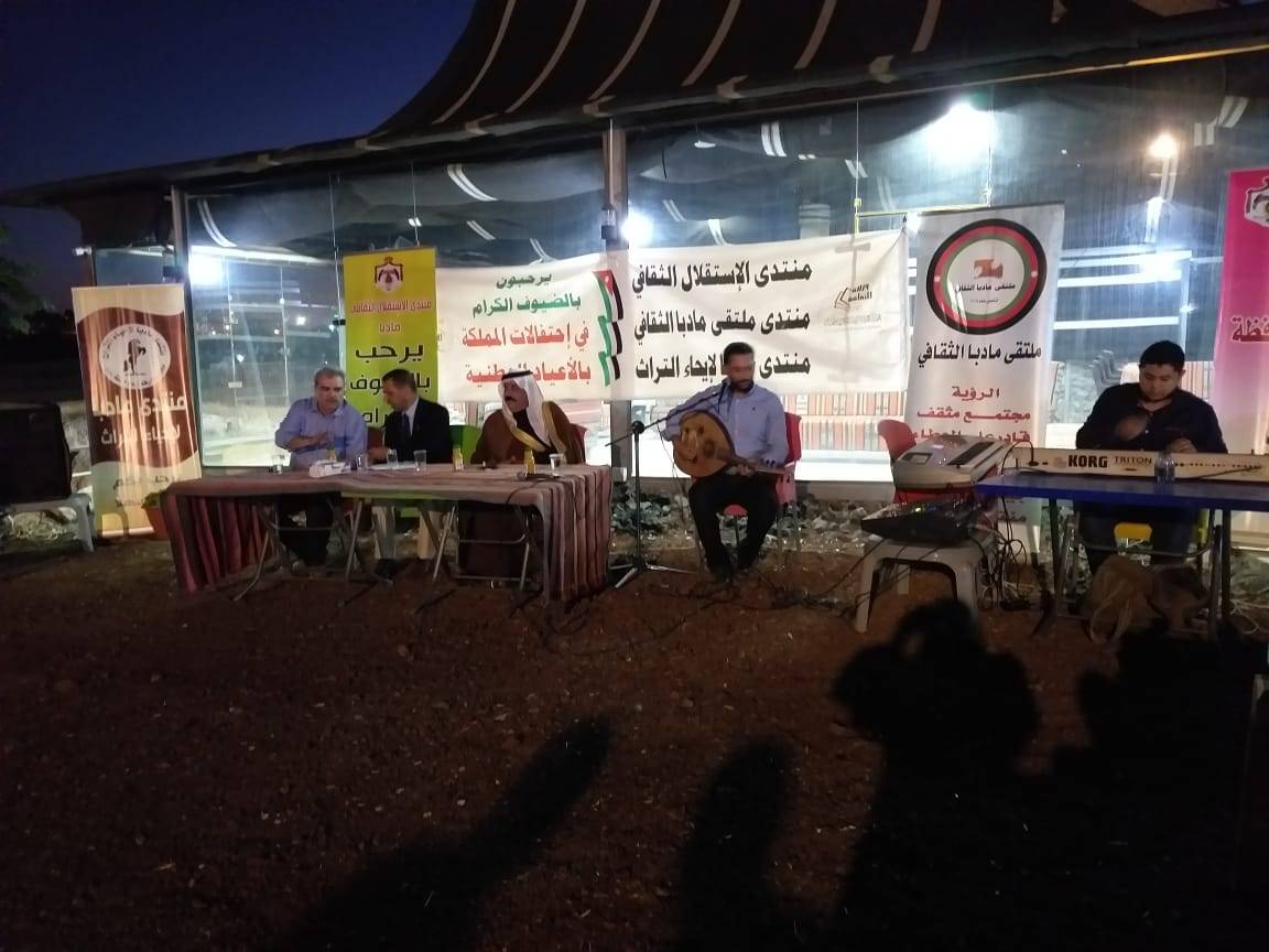 بالتعاون مع مديرية ثقافة مادبا أقام ملتقى مادبا الثقافي ومنتدى الاستقلال الثقافي ومنتدى مادبا لإحياء التراث بالتعاون ، أمسية شعرية بالمناسبات الوطنية ومئوية الدولة .