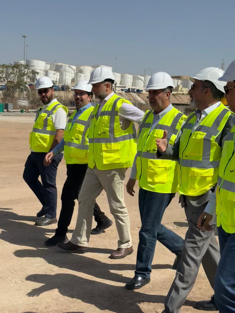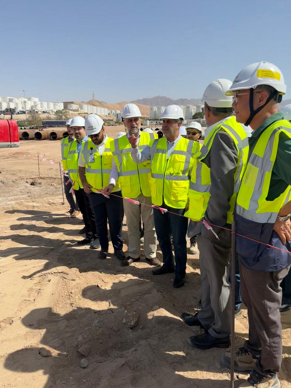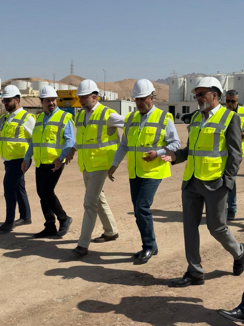 وخلال الزيارة، عقد الخرابشة اجتماعاً مع المقاول ومستشار المشروع ومدير المشروع المهندس عمر البدور من شركة تطوير العقبة، بحضور مدير عام شركة الكهرباء الوطنية المهندس سفيان البطاينة، ومدير الشركة اللوجستية المهندس أشرف الرواشدة، ومديرة مديرية النفط والغاز في الوزارة المهندسة إيمان عوّاد.