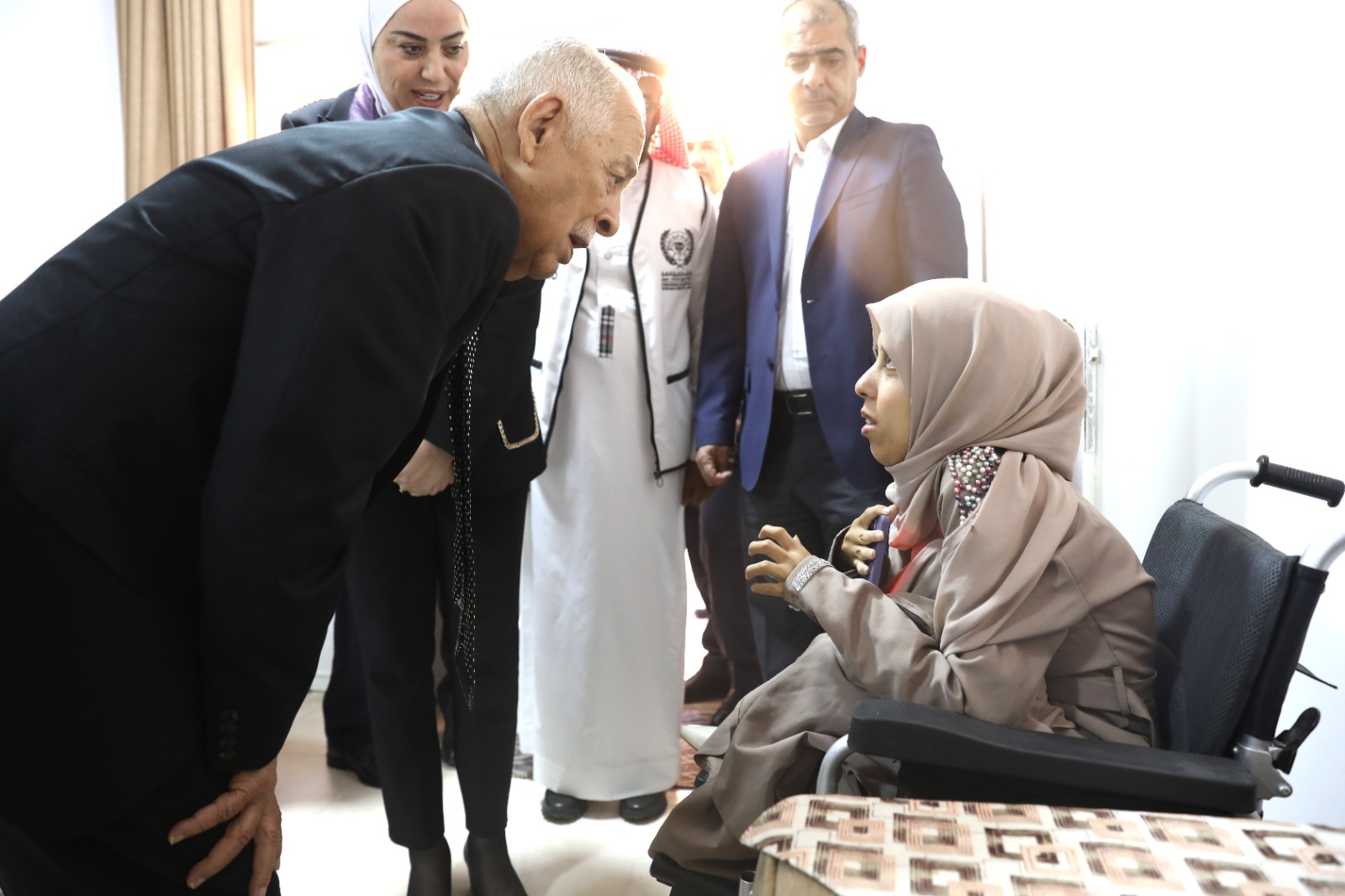 وسلّم رئيس الديوان الملكي الهاشمي يوسف حسن العيسوي، رئيس لجنة متابعة تنفيذ مبادرات جلالة الملك، مفاتيح الشقق السكنية وشهادات الانتفاع للأسر المستفيدة، بحضور وزير الأشغال العامة والإسكان المهندس ماهر أبو السمن، ووزيرة التنمية الاجتماعية وفاء بني مصطفى، ومحافظ العاصمة ياسر العدوان، ومدير عام مؤسسة الإسكان والتطوير الحضري جمانة العطيات، ومدير مكتب الأردن في هيئة الأعمال الخيرية العالمية – الإمارات العربية المتحدة رائد صبري أبو علفة.