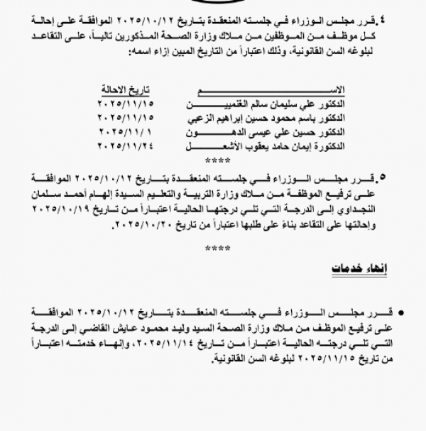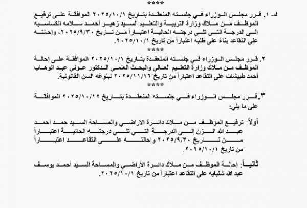 عاجل-موظفون حكوميون إلى التقاعد (أسماء)