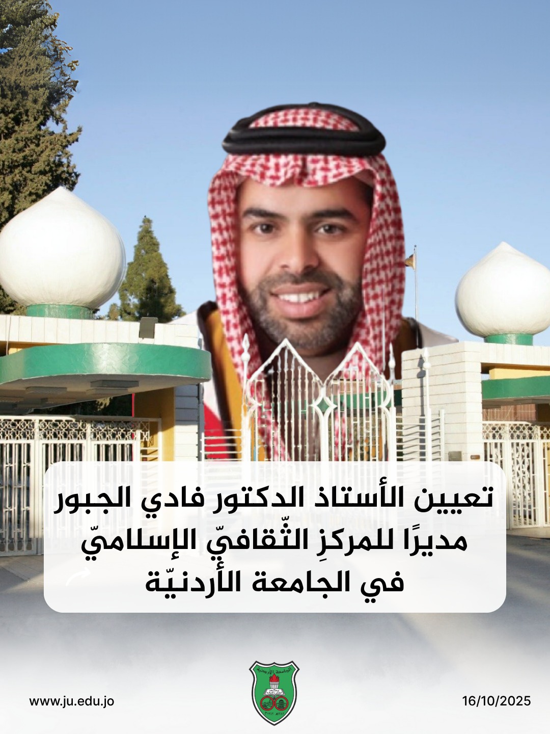 قرّرَ رئيس الجامعة الأردنيّة الدكتور نذير عبيدات تعيين الأستاذ الدكتور فادي الجبور مديرًا للمركزِ الثّقافيّ الإسلاميّ،