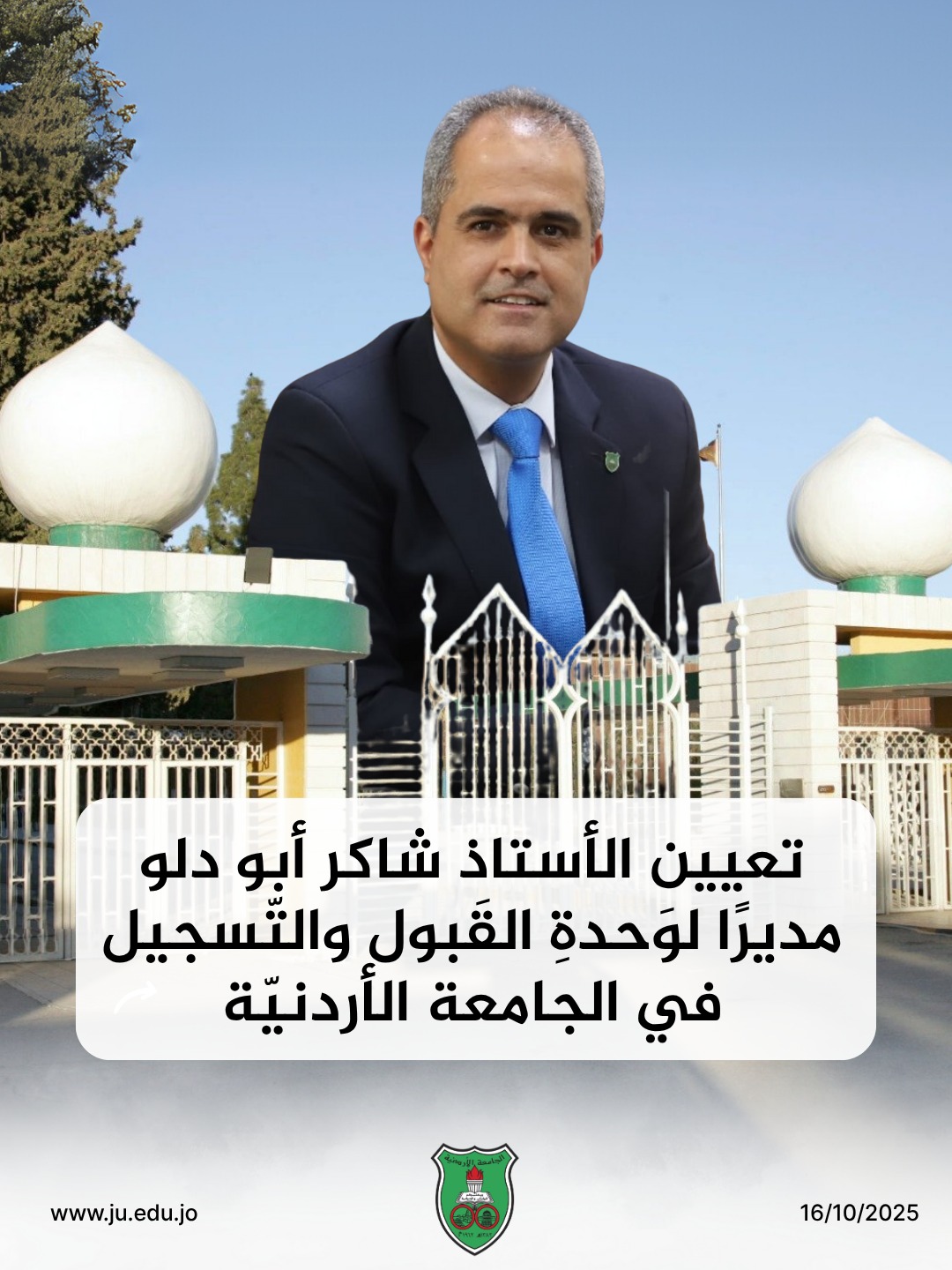 والأستاذ شاكر أبو دلو مديرًا لوَحدةِ القَبول والتّسجيل.