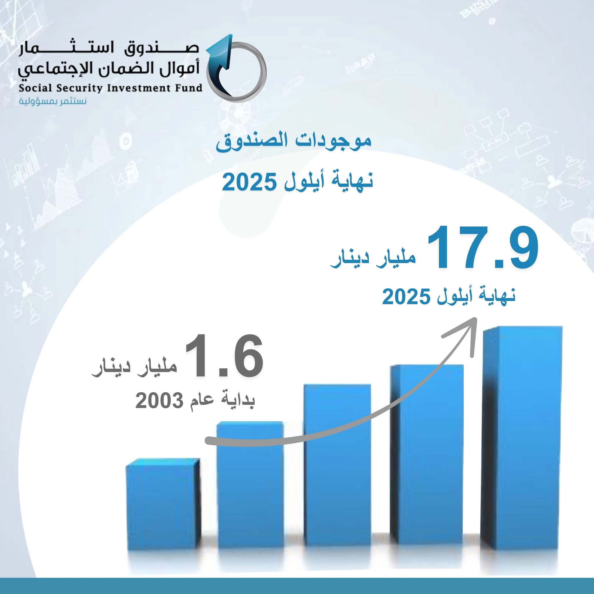 لامست موجودات صندوق استثمار أموال الضمان الاجتماعي حاجز 18 مليار دينار مع نهاية الربع الثالث من عام 2025، مسجلة نموًا بمقدار 1.7 مليار دينار منذ بداية العام وبنسبة نمو 10.6%، مدفوعة بنتائج المحافظ الاستثمارية وارتفاع القيمة السوقية لمحفظة الأسهم الاستراتيجية.