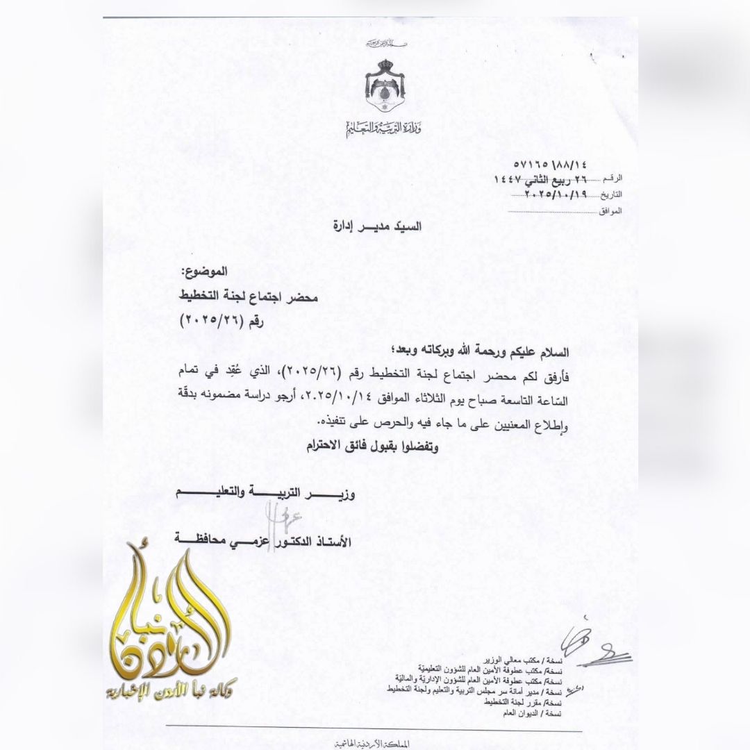 وجاء ذلك من خلال محضر اجتماع لجنة التخطيط الذي عقد صباح يوم الثلاثاء الموافق 14/10/2025.