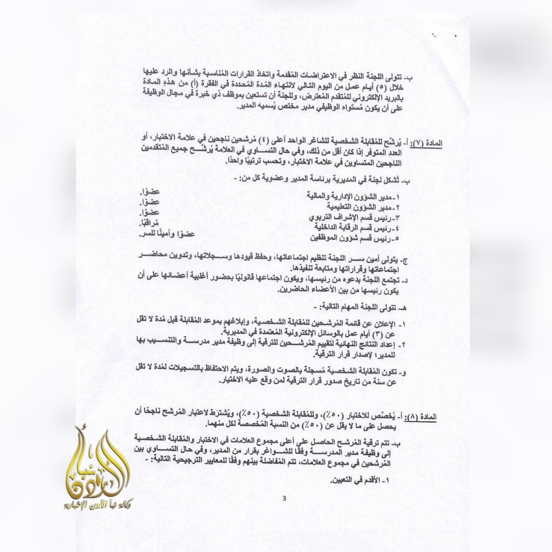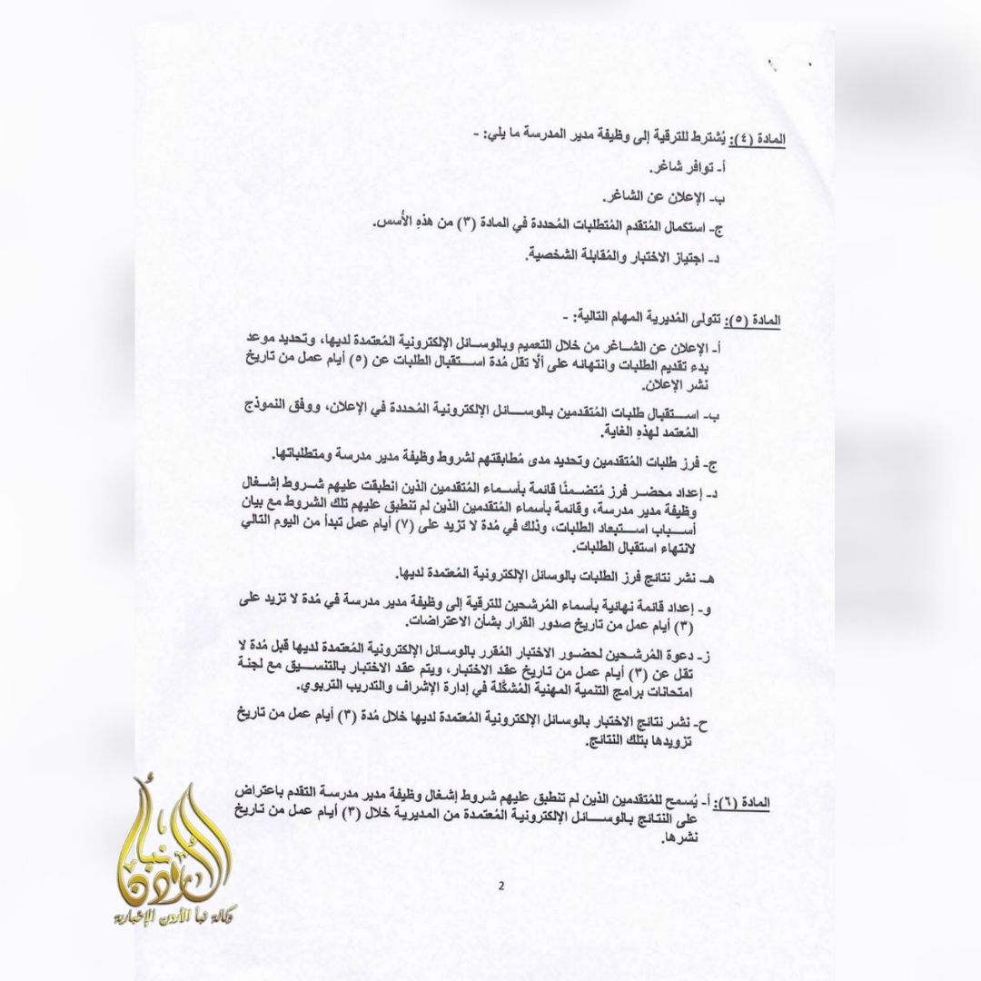عاجل - التربية تٌقر أسس الترقية إلى وظيفة مدير مدرسة