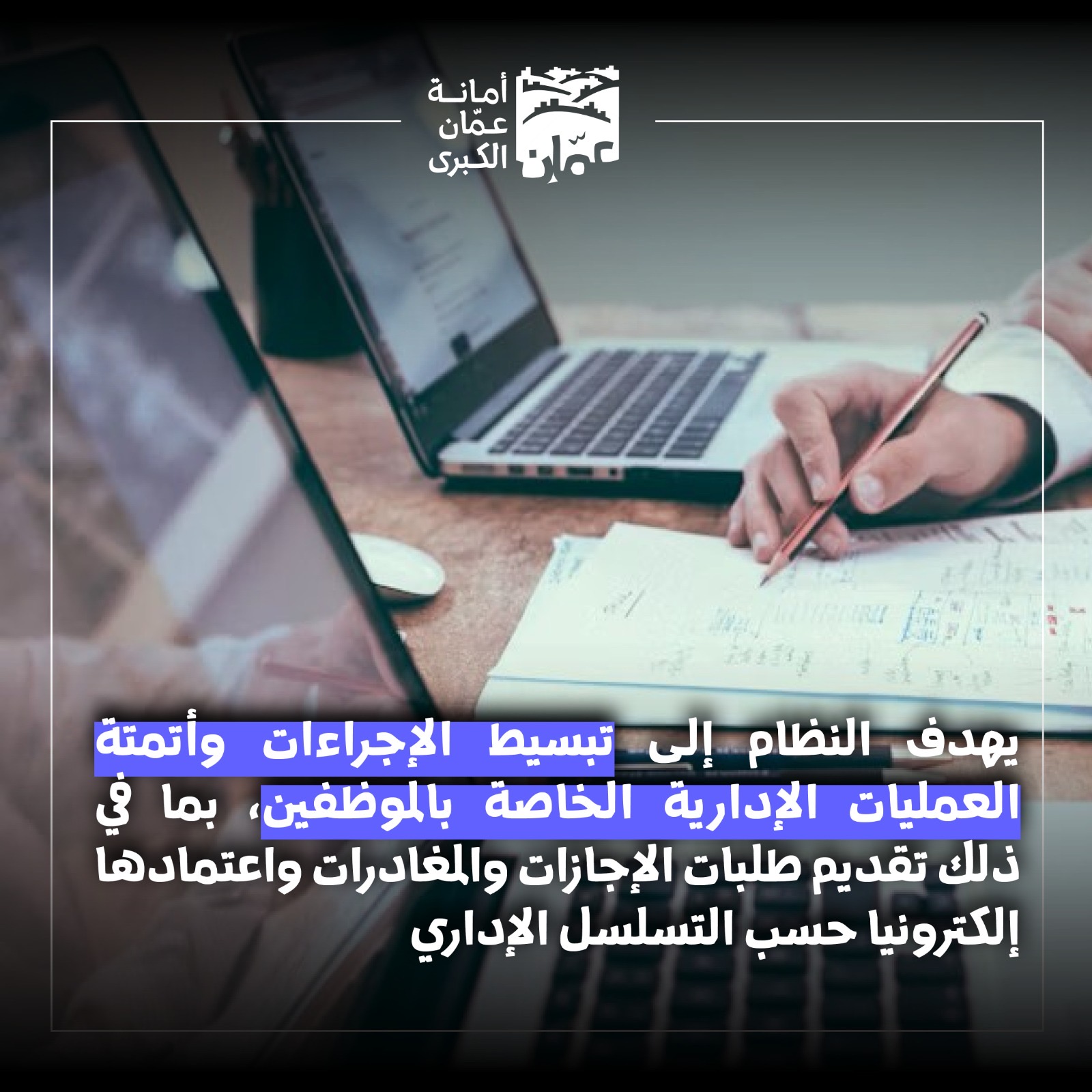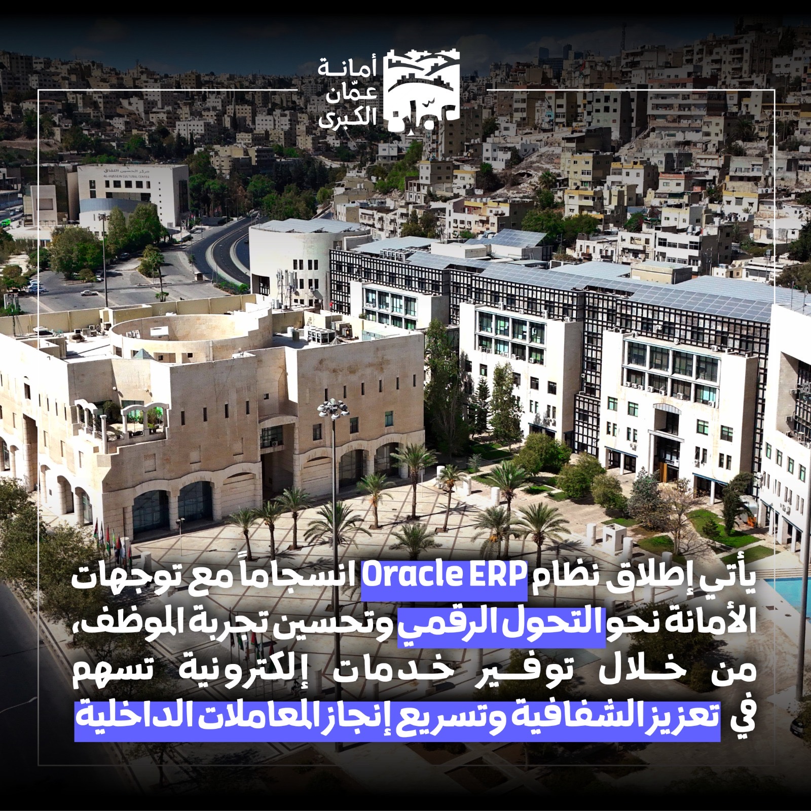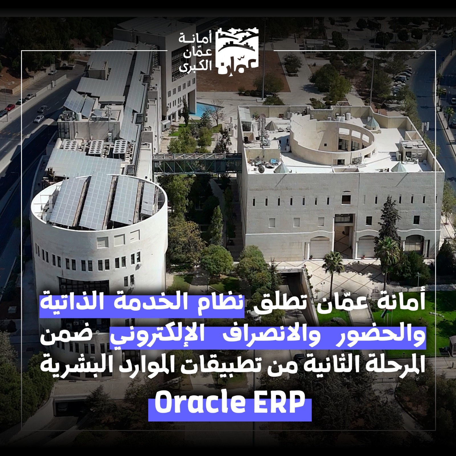أطلقت أمانة عمّان الكبرى، نظام الخدمة الذاتية، ونظام الحضور والانصراف الإلكتروني، ضمن المرحلة الثانية من حزمة الموارد البشرية لتطبيقات Oracle ERP، وذلك في إطار جهودها المستمرة لتطوير منظومة العمل وتعزيز التحول الرقمي في إدارة الموارد البشرية.