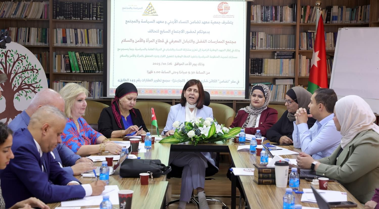 من جانبها، استعرضت الدكتورة زهور غرايبة ملامح مشروع "صوّت” الذي تنفذه الجمعية لتعزيز دور المرأة والشباب في الحياة السياسية وبناء تحالفات مدنية فاعلة ومستدامة. وأوضحت أن المشروع يهدف إلى تمكين الفاعلين المحليين من قيادة جهود المناصرة والتأثير، وتعزيز حضور النساء والشباب في الحوارات الوطنية وصنع القرار.