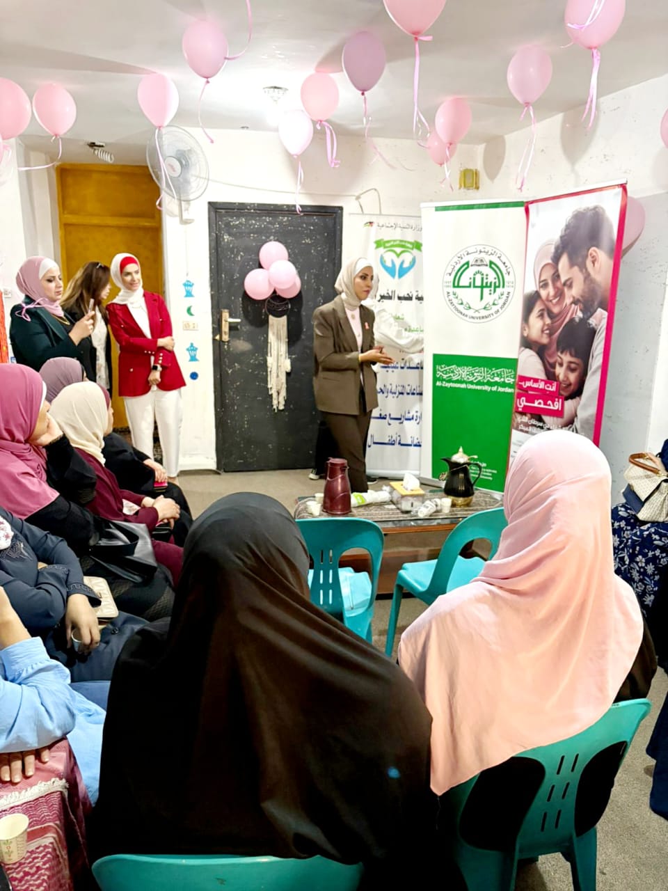 وفي سياق متصل، نظّمت الكلية فعالية صحية توعوية أخرى بعنوان "اسندي حالِك بحالك" حول سرطان الثدي، بالتعاون مع جمعية بنحب الخير ومؤسسة الحسين للسرطان (البرنامج الأردني لسرطان الثدي)، وذلك في مقر جمعية بنحب الخير، بمشاركة عدد من سيدات المجتمع المحلي.