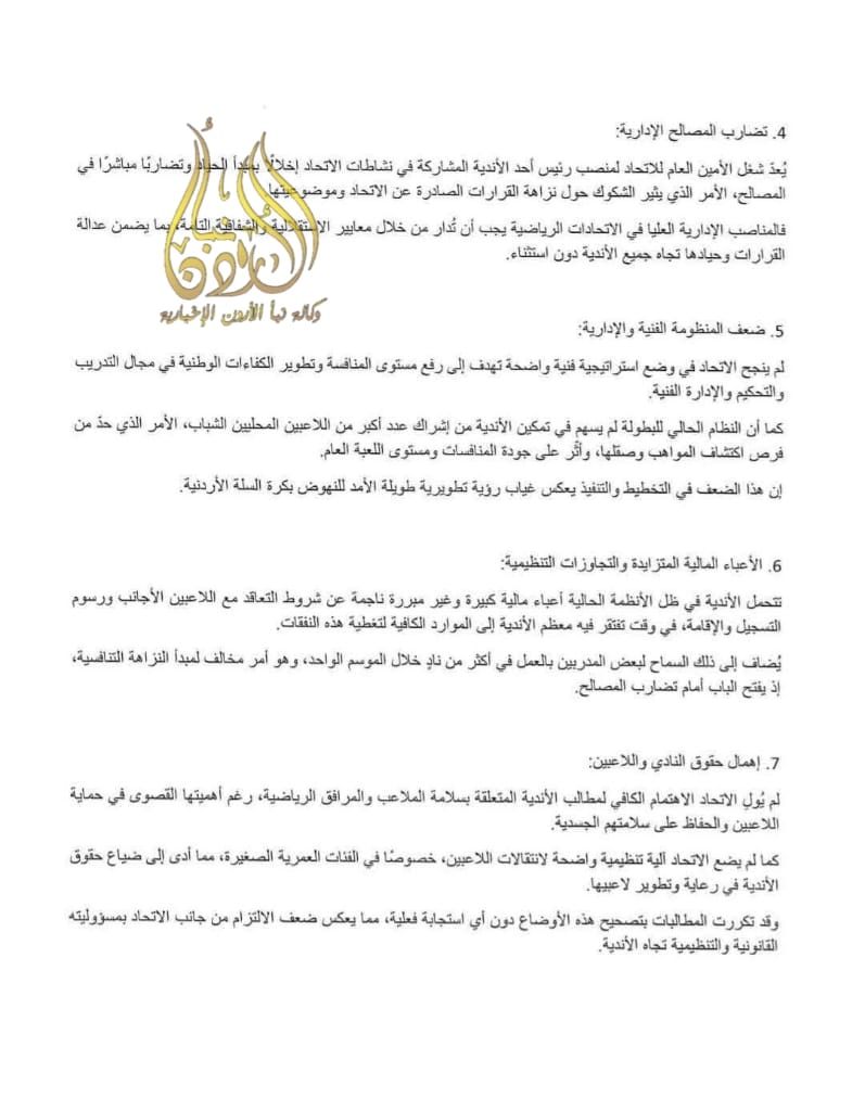 وأصدر النادي بياناً صحفياً مفصلاً، الأربعاء 29 أكتوبر 2025، أوضح فيه أن هذا القرار الصعب جاء "استنادا إلى جملة من الأسباب الجوهرية التي حالت دون توفر بيئة تنافسية عادلة ومنصفة"، مشددا على حرصه لصون حقوقه وسمعته العريقة.