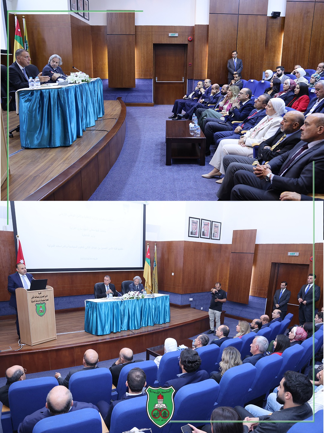 وتناول وزير الدّاخلية في المحاضرة الّتي جاءت بحضور الأساتذة نواب الرّئيس، وعميد الكلّيّة، وجمع من أعضاء الهيئتين التّدريسيّة والإداريّة وطلبة الكلّيّة، جملة من المحاور المُتعلّقة بأبرز التّحديات الإقليميّة الراهنة الّتي يُجابهها الأردنّ منها طبيعة الإقليم الموجود فيه والمناطق المُحيطة به إن كانت مستقرة أو ملتهبة، منوّهًا إلى أنّه يُشكّل التّحدي الأكبر بالنسبة للأردن، إلى جانب التّحديات الأخرى مثل تهريب المخدرات عبر الحدود، ومحاولات التّسلّل، والفقر والبطالة حيث كلّها عوامل تؤثر على الأمن الوطنيّ.