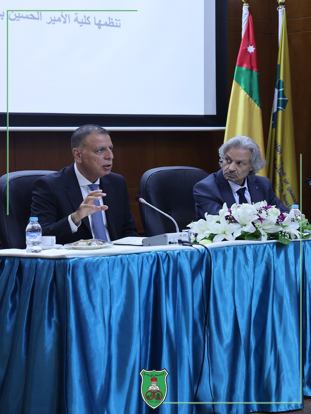 وكان عميد الكلّيّة الدّكتور محمد خير عيادات قد أشار في مداخلته إلى نظرة المواطن الأردنيّ للأمن وللأجهزة الأمنيّة، ومن أين جاءت صلابة الأردنيين الّتي يُعتزّ بها، مؤكّدًا أنّه رغم التّاريخ الطّويل للدّولة الأردنيّة وما مرّ به من محن وتحديات إلا أنَّ الدّولة الأردنيّة وبفضل حنكة قيادتها الهاشميّة استطاعت أن تحافظ على نفسها حتى أضحت دولة "استثنائيّة" وسط إقليم ملتهب بالحروب والصّراعات السّياسيّة.