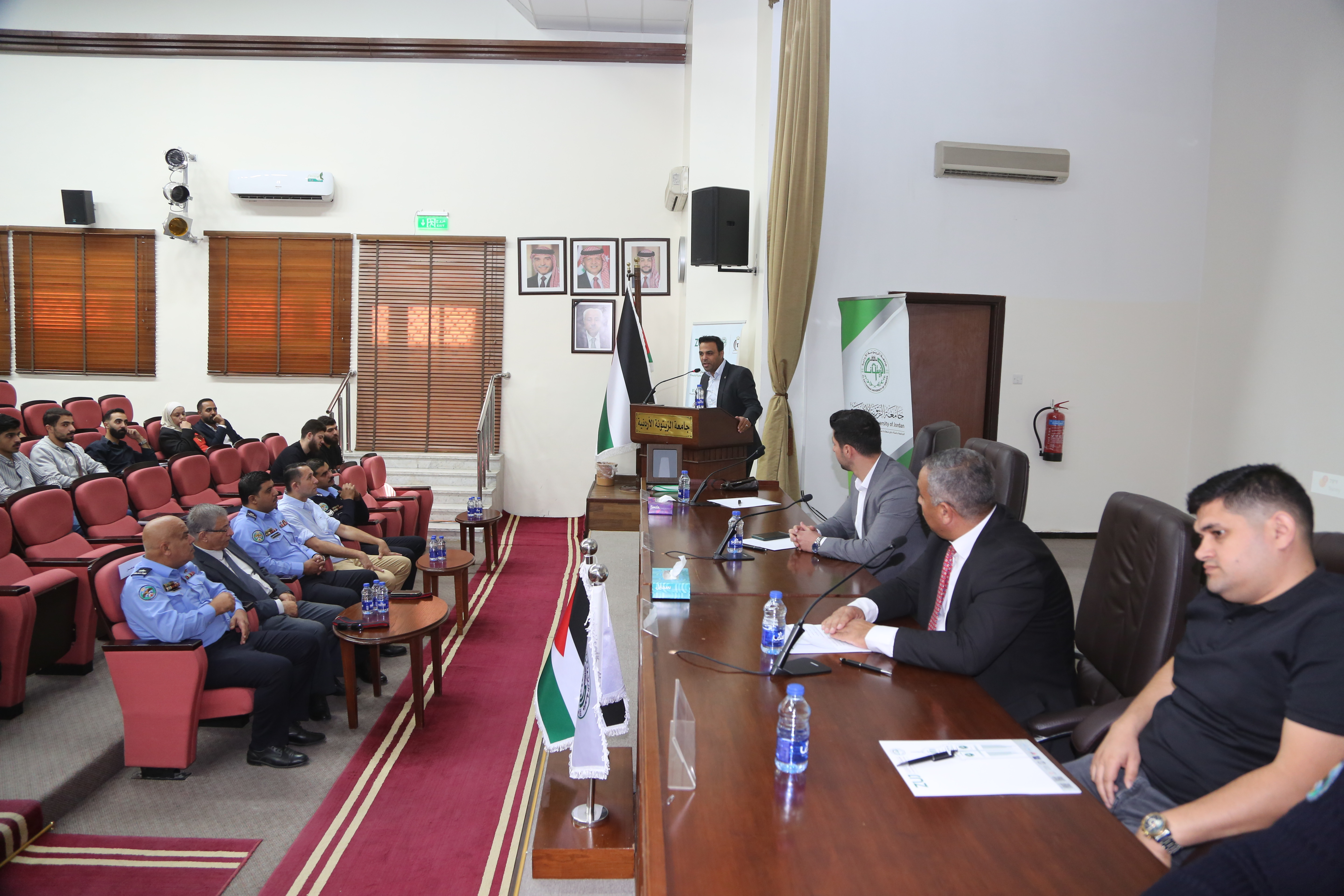 وتحدث في المحاضرة التي ادارها نائب عميد شؤون الطلبة الدكتور مأمون أبو حماد كلٌّ من الملازم أنس المرايات من وحدة الجرائم الإلكترونية، والملازم بدر المناصير من مركز السلم المجتمعي، والملازم أنس السعايدة من إدارة مكافحة المخدرات، والملازم تركي العجارمة من إدارة المعلومات الجنائية، بحضور الرائد ماجد البطوش من الشرطة المجتمعية، وعدد من ضباط وأفراد الامن العام.