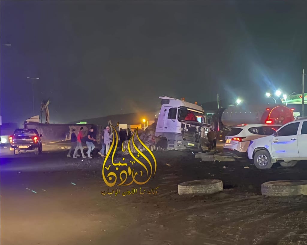 وتسبب الحازث في إغلاق كامل للسير باتجاه الزرقاء..