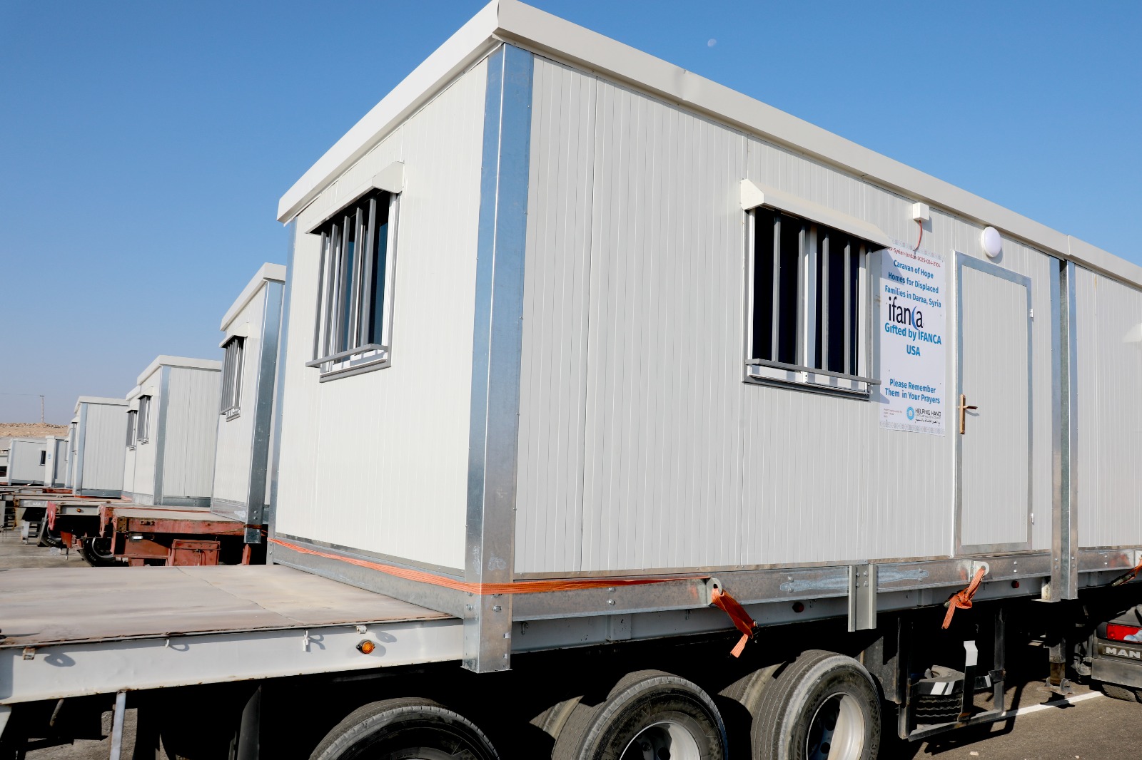 وقال أمين عام الهيئة الخيرية الأردنية الهاشمية الدكتور حسين الشبلي إن القافلة التي سُيرت بالتعاون مع الحكومة السورية، تشمل بيوتًا جاهزة مجهّزة للاستخدام مباشرة، لتوفير مأوى آمن للعائلات التي فقدت مساكنها، إلى جانب شحنة من الأدوية والمستلزمات الطبية لتلبية الاحتياجات الصحية العاجلة في عدد من المناطق، حيث تم التعاون مع كل من منظمة يد العون وميد جلوبال وشركة أدوية الحكمة الأردن لتأمين هذه التبرعات، وتوزيعها على مستحقيها من قبل الهلال الأحمر السوري في محافظة السويداء ومراكز إيواء النازحين في درعا، ممن تضرروا جراء الأوضاع الإنسانية الصعبة التي خلفتها الأحداث المؤسفة التي كانت شهدتها محافظة السويداء.