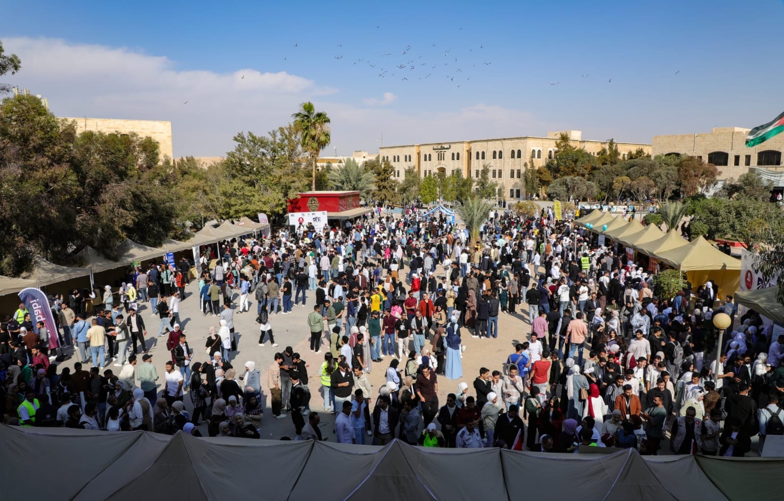 وأُقيمت الفعالية التي نظمتها عمادة شؤون الطلبة بالتعاون مع شركةWe Different والمبادرة الطلابية EVO TEAM، بمشاركة نحو 30 شركة ومؤسسة ومنظمة من مختلف القطاعات الاقتصادية الأردنية في ساحة عمادة شؤون الطلبة، ضمن جهود الجامعة الهادفة إلى تمكين الطلبة من تطوير مهاراتهم العملية وربطهم ببيئة العمل الواقعية، من خلال توفير فرص تدريبية مباشرة، وورش عمل تطبيقية، وجلسات تفاعلية مع ممثلي الشركات والمؤسسات المشاركة .
